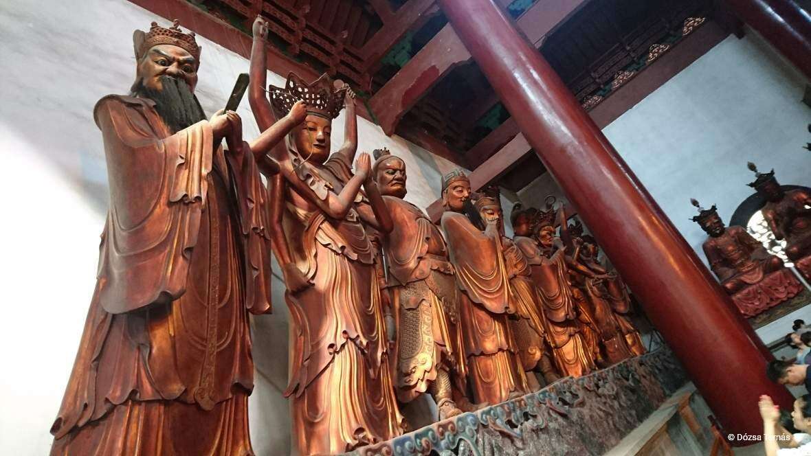 Reggeli a szállodában, majd egész napos városnézés Hangzhouban: a számtalan Buddha szoborral rendelkező, különleges szépségű Lingyin templom együttes felkeresése, majd a csodás kilátást biztosító Hat harmónia pagoda. Ebéd, majd utána hajókirándulás az évszázadok óta csodált Nyugati-tavon. Szállás Hangzhouban, 4 csillagos, belvárosi szállodában.