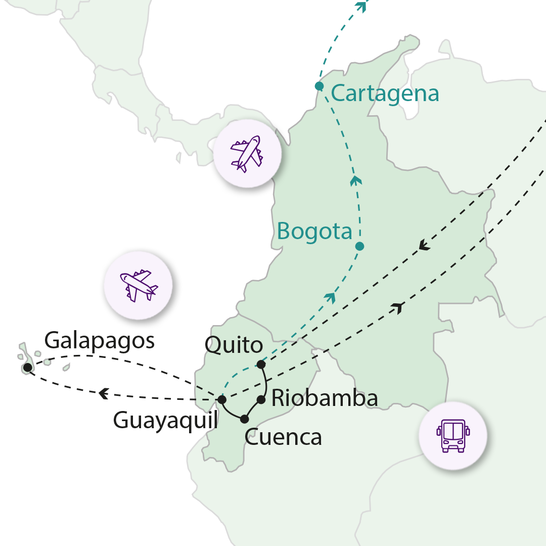 Galápagos szigetekre, amik a rajtuk honos óriásteknősökről kapták a nevüket. Repülőutunk után csónakkomppal jutunk Santa Cruz zöld szigetére, ahol a Charles Darwin Kutatóállomás teknősmentő programjába nyerhetünk betekintést. Szállásfoglalás (4 éj, teljes panzió). A szigetekre történő belépéskor mindenkinek fizetni kell 200 dollár Természetvédelmi Adót az útlevélellenőrző kapunál. 7. NAP SEYMOUR SZIGETLÁTOGATÁS HAJÓVAL A vulkanikus eredetű Galápagos a világ egyik legféltettebb és legjobban óvott természetvédelmi területe, melyről magunk is meggyőződhetünk. A sok sziget közül minden nap egyet-egyet látogathatunk meg. A páratlan növény és állatvilággal szakértő idegenvezetés keretében ismerkedünk meg. Az időjárás és a természetvédelmi szabályok függvényében a programban szereplő szigetek neve és sorrendje változhat. Az itt említendő szigetek a leggyakrabban látogatható természetvédelmi területek. Seymour-szigetén madarak és iguanák sokasága között sétálva ismerkedhetünk a páratlan élővilággal. Az itt élő madarak, iguánák megszokták az ember közelségét, ezért zavartalanul járhatunk közelükben, szemlélhetjük meg mindennapi életük mozzanatait. Természetesen sétánk során a szabályokat maradéktalanul be kell tartanunk. 8. NAP SANTA FE SZIGETLÁTOGATÁS HAJÓVAL Ma egy másik szigetre teszünk látogatást, ahol gyönyörködhetünk a népes tengeri-farkas kolóniákban, az óriásteknősökben, bizarr kinézetű iguánákban. Megfigyelhetjük a szigetek egyedülálló, nekünk, európaiaknak ismeretlen madárvilágát, láthatunk hatalmas pelikánokat, fregattmadarakat vörös torokzacskóval, lávasirályokat, amely a legritkább sirályfaj a világon. A sziklákon tarisznyarákok sokasága tanyázik. Idegenvezetőnktől megtudjuk, mi a különbség a fóka és a tengerifarkas között – első ránézésre ugyanolyannak tűnhetnek. 9. NAP SANTA CRUZ SZIGET Az elmúlt 6 év utasvéleményeit figyelembe véve, megnöveltük a galapagosi tartózkodást egy nappal. Délelőtt a Tortuga-öböl fehér homokos strandján figyelhetjük meg a tengeri iguánákat, amelyek tömegbe verődve sütkéreznek a napon, szárítják vizes bőrüket. Ez az egytelen gyíkfaj, amely a vízbe merül, mert a mangrove mocsarak vízalatti ágairól csipkedi az algát. A pintyek körülöttünk ugrálnak. Az öbölben fürdőzési lehetőségünk is van. Délután az óriásteknősöket látogatjuk meg eredeti környezetükben, közvetlen közelről fényképezhetjük le őket, majd Santa Cruz felső szigetén sétálunk egy különleges fáiról híres erdőben, ahol ikerkardellák szélén állva gondolkodhatunk el a Földünket formáló gigantikus erőkről. 10. NAP REPÜLÉS BOGOTÁBA VAGY BUDAPESTRE A szállodában reggeli után transzfer a repülőtérre, majd a társaság azon része, aki azt választotta, hogy hazautazik, Budapest felé veszi az irányt. Ők csoportosan, de idegenvezető nélkül átszállással repülnek haza. Budapestre érkezés a 11. napon délután. A többi utas átszállással Bogotába utazik az idegenvezetővel. +1. NAP BOGOTA Első állomásunk a Bogota szívében lévő híres piac. Ezt követően 3.048 m magasra megyünk fel, ahonnan lepillantunk Bogota zsúfolt városára. Délután ellátogatunk La Candelariába a történelmi belvárosba. A barokk épületek között sétálva érjük el a Simon Bolivar főteret. Megtekintjük az Arany-, majd a Botero Múzeumot, amelyekben aranytárgyakat, illetve a híres kolumbiai festő és szobrász műveit láthatjuk. Szállás. +2. NAP CARTAGENA Délelőtt transzfer a repülőtérre és elrepülünk Cartagenába. A várost a spanyol Pedro de Heredia alapította még 1533-ban. Itt cseréltek gazdát hosszú ideig a termények és a rabszolgák, mivel ez volt a régió legfontosabb kikötője. Sir Francis Drake is tartózkodott itt, a házát lefényképezhetjük. Manapság Cartagena óvárosa és a vár környéke egy gyöngyszem. Világörökség. A várost övező tengerparti szállodák sokasága pedig mutatja, hogy a terület népszerű nyaralóhely is. Megérkezés után séta, a különös színes házak tarkított belvárosban, majd szabadidő, vásárlási lehetőség. Szállás Cartagenában (2 éj). +3. NAP CARTAGENA Reggeli után városnézés folytatása Cartagenában. Felmegyünk a tengerparton fekvő