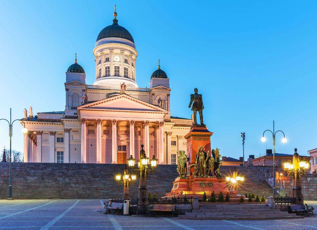 A Finn-öböl partján fekvő várost számos öböl, félsziget és sziget tagolja. Helsinkit 1550-ben I. Gusztáv svéd király alapította. A kis városkát sokáig szegénység, betegségek és harcok sújtották, ám miután 1812-ben I. Sándor orosz cár a Finn Nagyhercegség fővárosává tette, rohamos fejlődésnek indult. Szentpétervár mintájára neoklasszicista stílusban építették újjá. Jelenleg egy könnyen bejárható, rengeteg parkkal tarkított, élhető városképet mutat. Rövid városnézésünk során a piac, a Sziklatemplom, a Sibelius emlékmű és a város jelképének számító Szenátus tér látnivalóinak megtekintése szerepel. Egyéni étkezési lehetőség a kikötőben, ahol akár rénszarvas húsból készült hamburgert is ehetünk. Ezután transzfer a repülőtérre, hazautazás Budapestre menetrend szerinti közvetlen járattal.