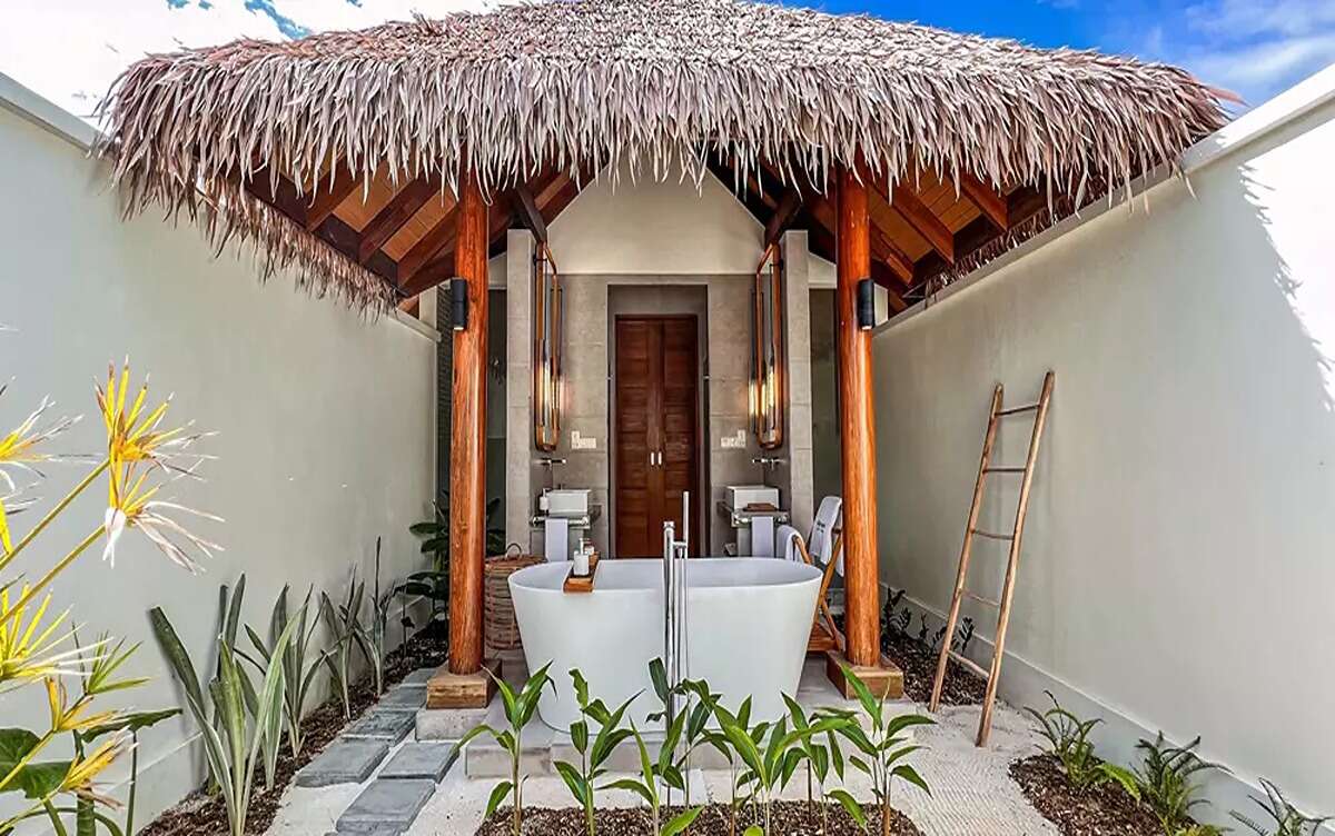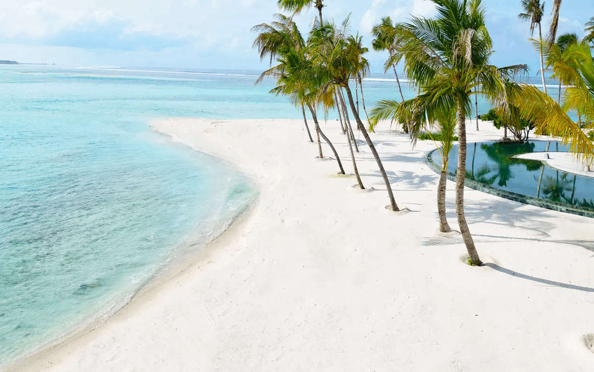 A türkízkék vizekkel, fehér homokkal és korallkertekkel körül vett szigeten 100 villa található. Kb.  30 perces hidroplanos transzferrel érkeznek a repülőtérről, közel 50 km-távolságra Malétól.