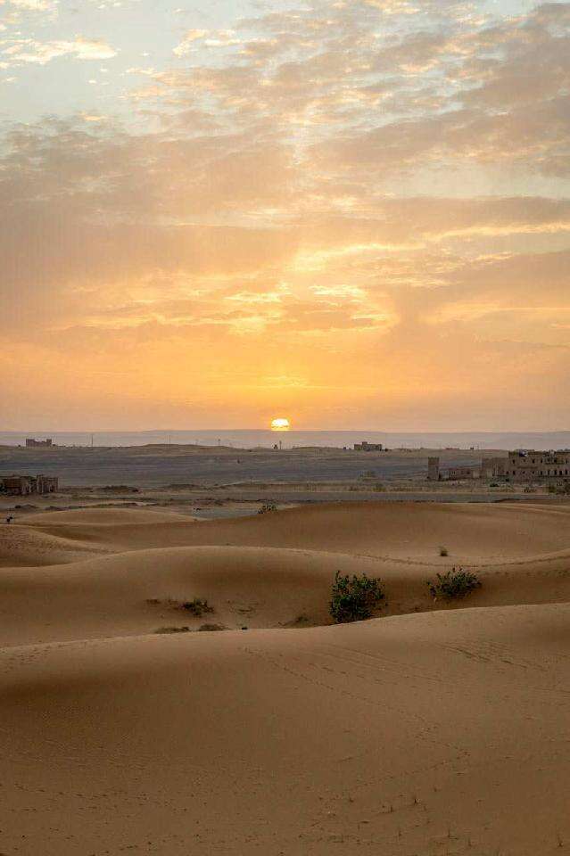 Reggeli után, továbbutazás Rissaniba, amely a jelenlegi királyi uralkodó család, az Alaouite dinasztia származási helye. A városban egy nagyon érdekes ősi leleteket (fosszíliákat) feldolgozó üzem meglátogatása. A következő állomás már a sivatag, megérkezünk Merzougába! A tábor felfedezése és a komfortos sátrak elfoglalása. Kora délután egy fakultatív, 3 órás dzsiptúrán van lehetőség részt venni (8 000 Ft / fő), a homokdűnék felfedezésével! Később egy igazán authentikus élmény következik, tevegelés a sivatagban, a naplementében! A szálláshelyre visszatérés után műsoros est, a tábortűz mellett.