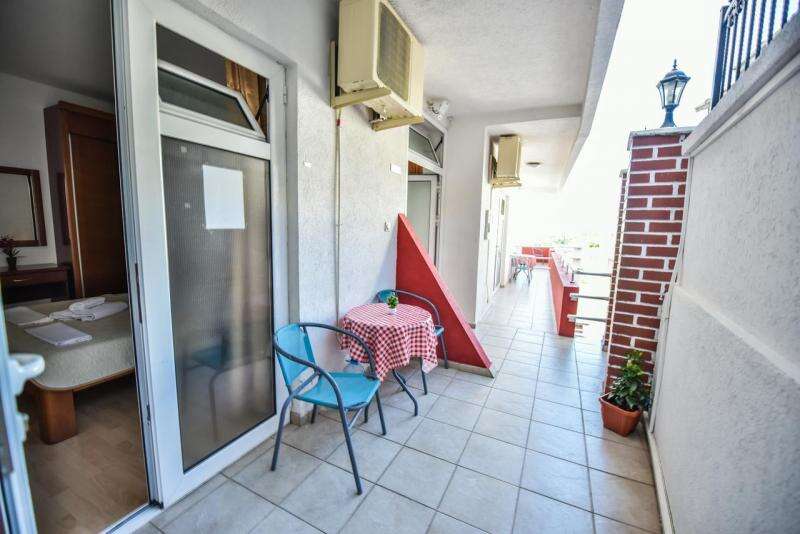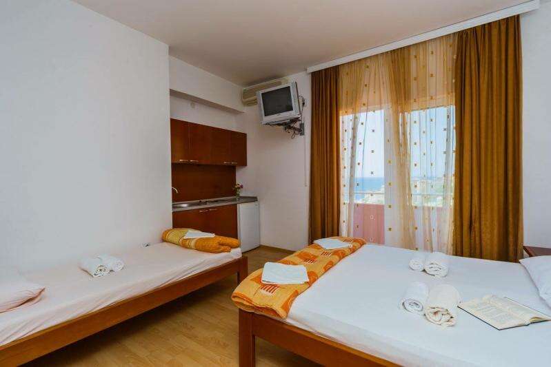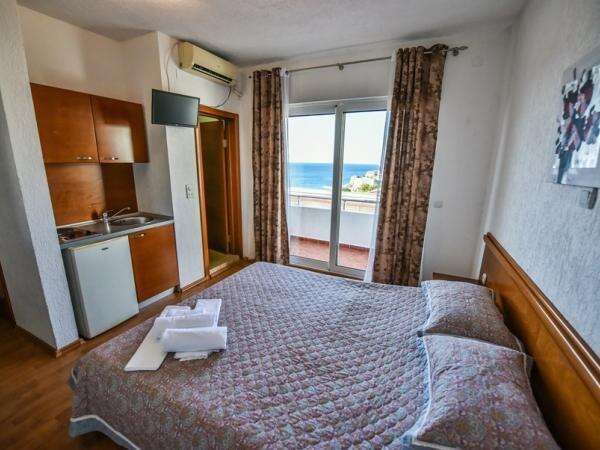 2+1 fős stúdió /7 db (egy légterű, franciágy és egy külön ágy, konyhasarok, klíma, TV, fürdőszoba, erkély, egy részük tenger felőli).
