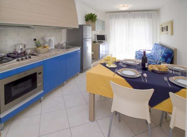Szolgáltatások: étterem a medencénél, lift, Wifi a közösségi területeken, élelmiszerbolt 50 m-re, 4 különböző mélységű medence, vízicsúszda, tágas napozóterasz napernyővel és nyugággyal, snack bár, beltéri fedett játszóterem, mosoda, kerékpárkölcsönzési lehetőség.