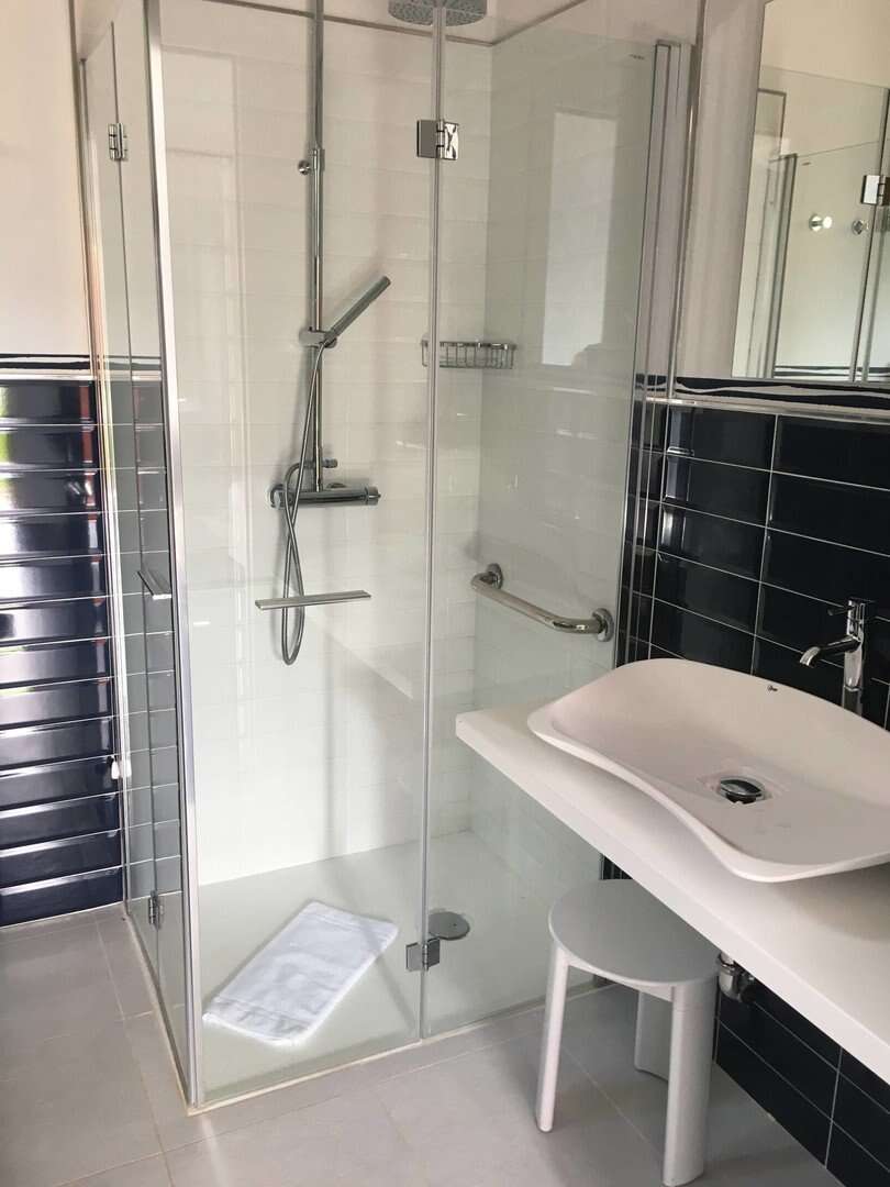 Tengerre néző kétágyas szoba: légkondicionáló, széf, TV, telefon, minibár és saját fürdőszoba(wc, zuhany vagy kád, hajszárító), tengerre néző kilátással.