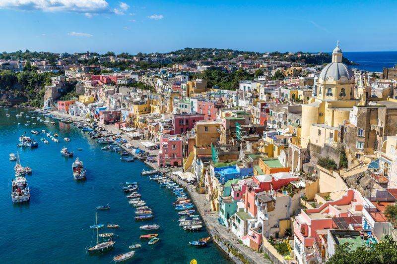 Szabad program vagy fakultatív kirándulás. Kora reggeli indulás a nápolyi kikötőbe, ahonnan kb. 40 perces hajózással érjük el a nápolyi öböl legkisebb szigetét. Procida, színes kis házaival már messziről elbűvöli a látogatókat. A sziget két világhírű film forgatási helyszínéül is szolgált (Il Postino, A tehetséges Mr. Ripley). Microtaxi segítségével járjuk be a kis sziget festői központját. Megtekintjük a Corricella kikötőt, és a sziget védőszentjének tiszteletére emelt Szent Mihály katedrálist, majd ismét hajóra szállunk, és Ischia szigetére kirándulunk. Utunk először is Ponte Ishia felé vezet, ahol a sziget ikonikus jelképe és leghíresebb látnivalója vár. A Castello Aragonese sziklára épített, 133 méter magas erődítményét, a fő szigettel egy kőhíd köti össze. A látványos helyszín számtalan hollywoodi filmben is feltűnik. Visszaérkezés a szállodába az esti órákban. (Ár: 85 EUR/fő)