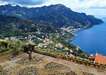 Fakultatív kirándulás a világ egyik legszebb panoráma útján a híres Kék szalag útvonalon. Az Amalfi-part többi településével együtt 1997 óta része az UNESCO Világörökségének. Positano városa felett Itália egyik legszebb, ha nem a legszebb panorámája tárul elénk. A látvány lenyűgöző a sziklaoldalba kapaszkodó apró, színes házacskákkal és az ámulatba ejtően kék tengerrel. Első megállónk az elbűvölő Positano , ahol sétát teszünk a városközpontban és a tengerpart felől is gyönyörködhetünk az elképesztő fekvéssel büszkélkedő városka mesés látványában . „Positano mélyre hatol” – írta Steinbeck. „Álomhely, amely nem tűnik valóságosnak, amíg ott vagy, de hívogatóan valóságossá válik, ha elhagytad.” Hajóra szállva, sziklaszirtek, festői öblök mentén egy órás sétahajózás után érkezünk meg Amalfi városába. Séta a Monte Cerreto lábánál fekvő kisvárosban, ahol megtekintjük a Szent András Dóm épületét, majd rövid szabadidő. Amalfi városából már ismét autóbuszunkkal folytatjuk tovább utunkat. Kanyargós hegyi úton jutunk fel a színes kerámiáiról is híres Ravello városába, melyet az évente megrendezett Wagner-fesztiválnak köszönhetően a Zene városának is neveznek. A Rufolo család nevéhez köthető a település felvirágzása, egykori villájuk ma Ravello leglátogatottabb látványossága. Itt található az a fantasztikus kilátópont is, ahonnan az Amalfi partvidék legszebb panorámája tárul elénk. (Ár: 75EUR/fő) Visszaérkezés a szállodába a késő délutáni órákban.