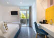 • Kétágyas szoba: Apartman mérete: 20 m2 Kilátás: kert vagy utca Felszereltség: Wifi, ingyen pipereholmi, zuhanykabin, törölközők, hajszárító, kézfertőtlenítő, légkondicionálás, széf, hűtőszekrény, íróasztal, telefon, műholdas csatornák, síkképernyős tévé, terasz, kültéri bútorok, konnektor az ágy közelében, ébresztés, vízforraló, kávéfőző • Óceánra néző szoba: Apartman mérete: 20 m2 Kilátás: óceán Felszereltség: Wifi, ingyen pipereholmi, zuhanykabin, törölközők, hajszárító, kézfertőtlenítő, légkondicionálás, széf, hűtőszekrény, íróasztal, telefon, műholdas csatornák, síkképernyős tévé, terasz, kültéri bútorok, konnektor az ágy közelében, ébresztés, vízforraló, kávéfőző • Junior lakosztály: Apartman mérete: 22 m2 Kilátás: kert vagy utca Felszereltség: Wifi, ingyen pipereholmi, zuhanykabin, törölközők, hajszárító, kézfertőtlenítő, légkondicionálás, széf, hűtőszekrény, íróasztal, telefon, műholdas csatornák, síkképernyős tévé, terasz, kültéri bútorok, konnektor az ágy közelében, ébresztés, vízforraló, kávéfőző, kanapé • Óceánra néző junior lakosztály: Apartman mérete: 22 m2 Kilátás: kert vagy utca Felszereltség: Wifi, ingyen pipereholmi, zuhanykabin, törölközők, hajszárító, kézfertőtlenítő, légkondicionálás, széf, hűtőszekrény, íróasztal, telefon, műholdas csatornák, síkképernyős tévé, terasz, kültéri bútorok, konnektor az ágy közelében, ébresztés, vízforraló, kávéfőző, kanapé • Panorámás kilátással a tengerre deluxe junior lakosztály: A hotel legfelső emeletin található szoba, melyből csodás kilátás nyílik az óceánra. Apartman mérete: 22-28 m2 Kilátás: kert vagy utca Felszereltség: Wifi, ingyen pipereholmi, zuhanykabin, törölközők, hajszárító, kézfertőtlenítő, légkondicionálás, széf, hűtőszekrény, íróasztal, telefon, műholdas csatornák, síkképernyős tévé, terasz, kültéri bútorok, konnektor az ágy közelében, ébresztés, vízforraló, kávéfőző, kanapé