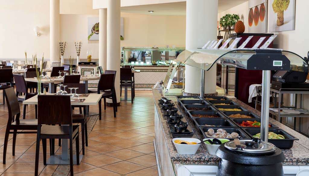 • Buffet Restaurant Nemzetközi és regionális svédasztalos étterem, ahol az ételek széles körű választékát kínálják látványkonyhával. Saláták, halak, húsételek, szezonális gyümölcsök és zöldségek, tészták, pizzák és finom desszertek közül válogathat. Felhívjuk a figyelmét, hogy a félpanziós ellátás csak étkezési szolgáltatásokat tartalmaz, italokat nem. • Pool Snack Bar Snack menü salátákkal (konyhakerti saláta, cékla saláta, tonhal saláta), snackekkel (chips, hot dog, krokett, csirkefalatok), szendvicsekkel (sonka és sajt, amerikai), tésztákkal (cannelloni di carne, görög moussaka), készételekkel és hamburgerekkel. Ezenkívül italok, koktélok, hosszú italok, gin, tonikok, jégkásák és jégkrémek széles választéka is várja Önt. Ideális könnyebb ételek elfogyasztására a medence mellett. • Lounge Bar Italok, koktélok, hosszú italok széles választékát élvezheti itt egy fantasztikus esti előadás mellett. A bárhoz egy óceánra néző kinti terasz is tartozik.