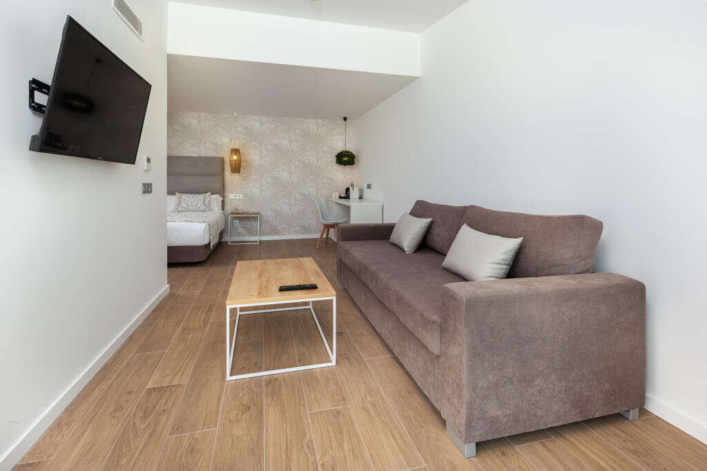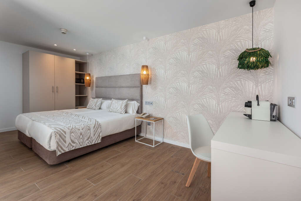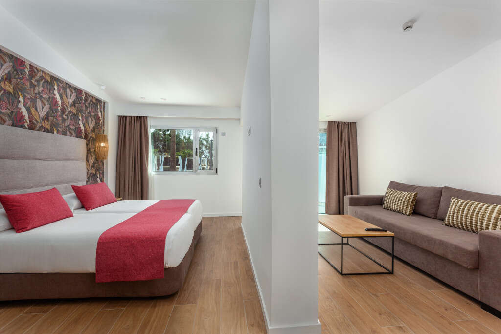 • Junior lakosztály: Alapterület: 33 m2; Felszereltség: 2 nagyméretű ágy összetolva, Wi-Fi, légkondicionáló, TV műholdas csatornákkal, széf (felár ellenében), kanapé, minibár (felár ellenében), napi sajtó, kapszulás kávégép, fürdőszoba zuhanyzóval, hajszárítóval, nagyítós tükörrel, piperecikkekkel, erkély vagy terasz. • Lakosztály: Alapterület: 42 m2; Felszereltség: 2 nagyméretű ágy összetolva, Wi-Fi, légkondicionáló, TV műholdas csatornákkal, széf (felár ellenében), kanapé, minibár (felár ellenében), napi sajtó, kapszulás kávégép, fürdőszoba zuhanyzóval, hajszárítóval, nagyítós tükörrel, piperecikkekkel, erkély vagy terasz. • Lakosztály csak felnőtteknek: Alapterület: 56 m2; Felszereltség: 2 nagyméretű ágy összetolva, Wi-Fi, légkondicionáló, TV műholdas csatornákkal, széf (felár ellenében), kanapé, minibár (felár ellenében), napi sajtó, kapszulás kávégép, fürdőszoba zuhanyzóval, hajszárítóval, nagyítós tükörrel, dupla mosdókagylóval, piperecikkekkel, erkély vagy terasz. • Családi lakosztály: Alapterület: 48 m2; Felszereltség: 2 nagyméretű ágy összetolva, Wi-Fi, légkondicionáló, TV műholdas csatornákkal, széf (felár ellenében), kanapé, minibár (felár ellenében), napi sajtó, kapszulás kávégép, fürdőszoba zuhanyzóval, hajszárítóval, nagyítós tükörrel, dupla mosdókagylóval, piperecikkekkel, erkély vagy terasz. • Junior lakosztály mozgáskorlátozottaknak: Alapterület: 35 m2; Mindent úgy van tervezve, hogy megkönnyítse a mozgást. A széles ajtók , a tiszta közlekedők és a funkcionális pihenőhelyek tökéletes harmóniát alkotnak, amely lehetővé teszi, hogy szabadon pihenhessen és élvezhesse a környéket. Felszereltség: 2 nagyméretű ágy összetolva, Wi-Fi, légkondicionáló, TV műholdas csatornákkal, széf (felár ellenében), kanapé, minibár (felár ellenében), napi sajtó, kapszulás kávégép, átalakított fürdőszoba széles ajtóval, esőztető zuhanyzóval, kapaszkodókkal, hajszárítóval, nagyítós tükörrel, piperecikkekkel, terasz.