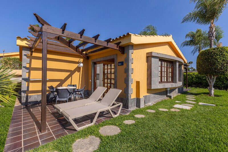 Kiváló 4 csillagos resort, közvetlenül Maspalomas homokdűnéi mellett, lenyűgöző környezetben található. Csodás felszerelt és modern bungallók és kiváló kiszolgálás várja Önt és családját. A közelben több étterem, bár és bevásárlóközpont is található.