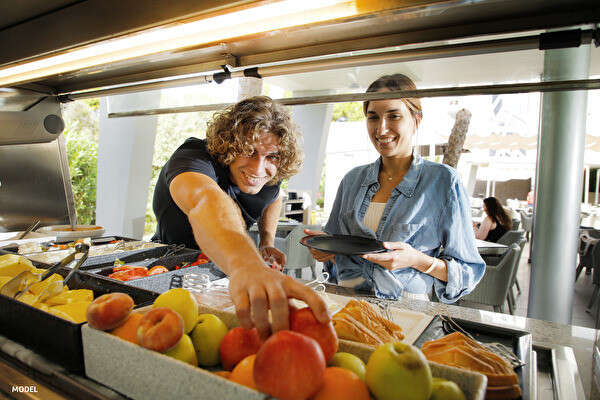 A főétterem változatos büfékínálattal várja vendégeit, látványkonyhával és heti 2 alkalommal tematikus estékkel. A Krystal tengerre néző a’ la carte étterem egyedülálló kulináris élményt nyújt minden alkalommal. Heti kétszer vehető igénybe, előfoglalás szükséges. Uraknak hosszú nadrág viselése ajánlott a vacsorához.