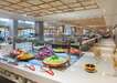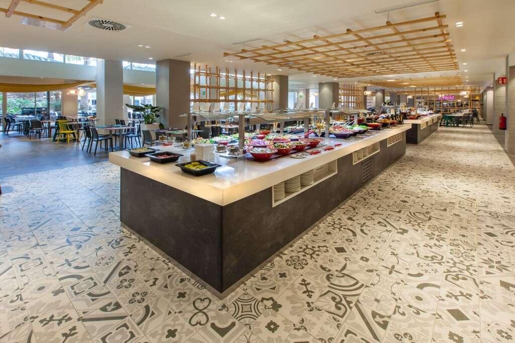 • sABOReA: A hotel fő étterme, ahol svédasztalos reggeli, ebéd és vacsora várja. Hetente változó menüsor és heti ötször tematikus vacsora áll rendelkezésére, melyet az étterem séfjei a nemzetközi konyhák legkedveltebb ízeiből állítottak össze. Kérésre diabetikus menü is elérhető, ezenkívül az étteremben kialakításra került egy gyereksarok is, kimondottan a kicsik ízlésére szabva. • Snack and Go: Fedett étkezde kényelmes kültéri terasszal. Belül négy állomást talál: olasz, burger, természetes és desszert állomások kínálatából választhat, valamint két önkiszolgáló italpult áll rendelkezésére, ahol vizet, gyümölcslevet, bort, sangriát és üdítőitalokat fogyaszthat. • Lobby bar-terrace: Az előcsarnokban található bárban italok széles választéka tárul Ön elé: kávé, tea, koktélok és egyéb italok várják. • Island Bar: A család összes tagja talál majd kedvére valót ebben a bárban, legyen az egy üdítő, koktél vagy bármilyen ital. Na és azok a harapnivalók! • Holidays Bar: Nem kell messzire mennie egy hűsítő italért akkor sem, ha éppen a medence partján pihen. Apró falatokokból és italokból álló kínálat várja. • 24/7 by Abora: A hotel 24 órában nyitvatartó önkiszolgáló bárja, ahol hideg harapnivalók, egyéb nassolnivalók és italautomaták várják az All Inclusive vendégeket.