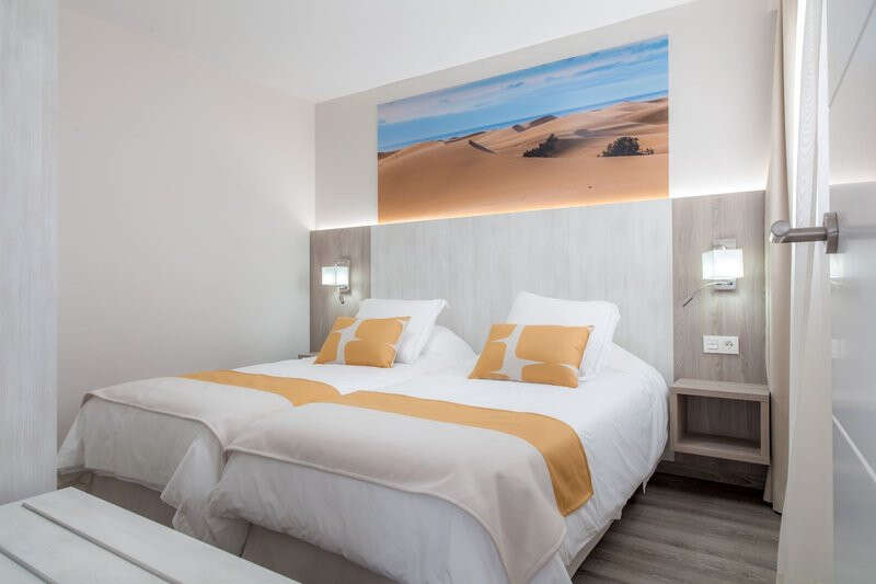 A hotelben stúdiók és 1, illetve 2 hálószobás apartmanok állnak rendelkezésre, így akár nagyobb társaságok számára is kényelmes megoldást nyújthat. A szálloda tetején található egy napozóterasz, ahonnan csodás kilátás nyílik egészen a Maspalomas-i dűnékig. A deluxe studió és szoba teljesen felújított!
