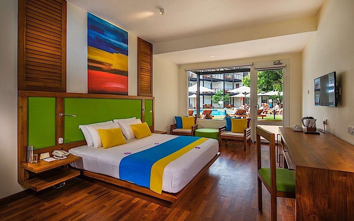 Szobák (superior): Klasszikus, színes Srí Lanka-i stílusjegyeket viselő szoba felszereltségéhez tartozik a légkondicionáló, TV, minibár, széf, telefon, fürdőszoba zuhanyzóval, hajszárító, wifi, tea/kávé készítési lehetőség, balkon/terasz, ami részben tengerre néző.