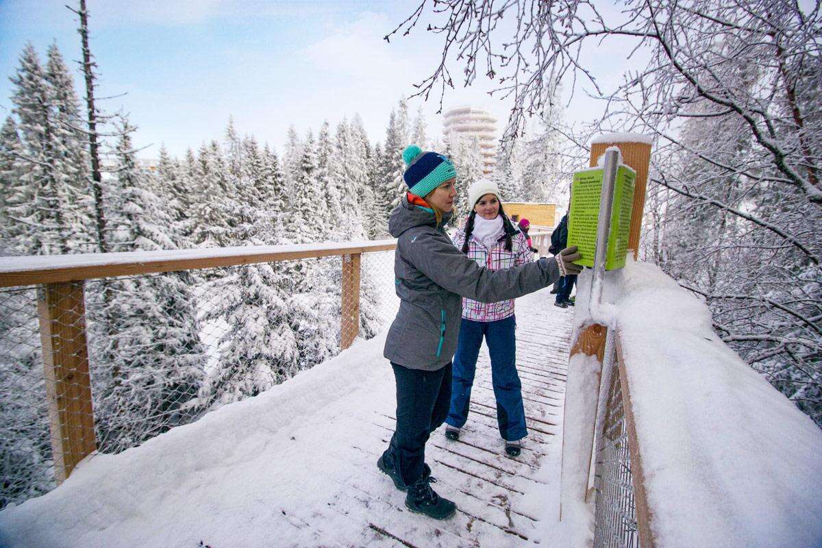 A tanösvény a fenyőfák lombkoronája felett, átlagosan 24 méter magasságban kanyarog mintegy 1234 méter hosszan, a végén pedig egy 32 méter magas kilátótorony található. A 120 oszlop által tartott, megfelelő biztonsági berendezésekkel ellátott ösvény szélessége 1,8 méter. Az ösvényen végighaladva az erdő olyan állataival is találkozhatunk, melyeket a földfelszínről biztosan nem láthatnánk. Helyenként pedig, ahol az ösvény fák koronája fölé emelkedik, pazar látvány tárul elénk.
