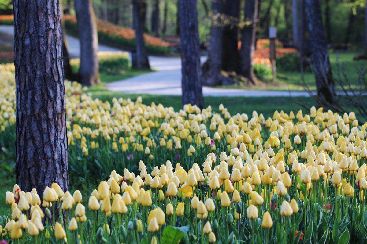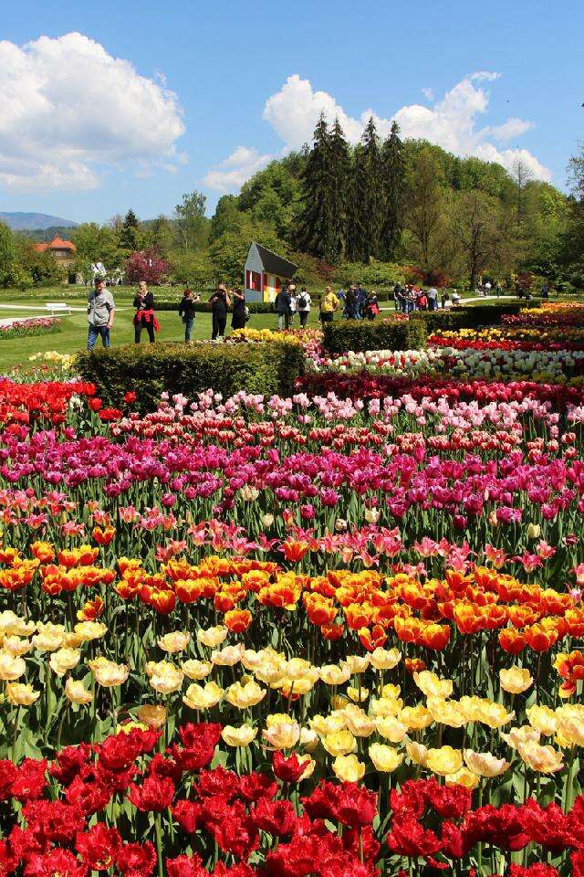 Ha több millió tulipánra gondolunk, akkor azonnal a hollandiai Keukenhof nevű tulipános kert jut eszünkbe, pedig a szlovéniai Kamnik-i arborétum sokkal-sokkal közelebb van, és ott is a Keukenhof-hoz hasonlóan hosszan kígyóznak a színes tulipánágyások…