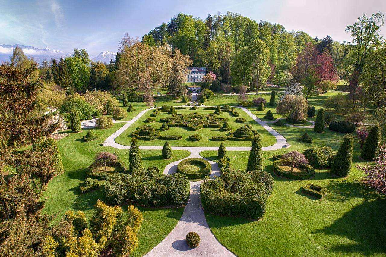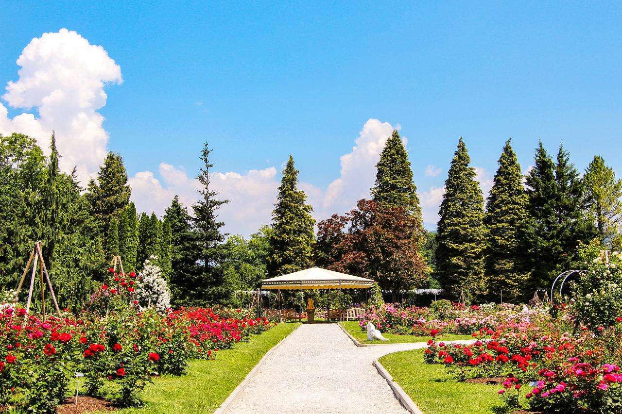 Utunk első állomása a Ljubljanától mindössze 20 km-re található Arborétum, ahol a tavaszi időszakban a híres holland Keukenhofhoz hasonlóan akár 2 millió tulipán is virágzik egyszerre. A bejárat után rögtön balra tekintve azonnal mesés látványban lesz részünk: a nyíló tulipánok mellett kanyargó ösvények, árnyékoló sátrak, üvegházak, és a távolban a gyönyörű havas hegyek, a Karavankák. A 85 hektáros területen a tulipánokon kívül 1000 rózsafajta, a télikertben kaktusz és orchideagyűjtemény majd 5000 fa várja a turistákat. Festői környezetben, patakok és tavak között, hegyekkel körbevéve sétálgathatunk a milliónyi virág között. a kicsiket játszótér is várja, de ajándékbolt, kávézó, kisvonat is hozzájárul a szórakozáshoz. Kissé távolabb szobrok, szépen nyírt gyep, formára vágott bokrok sora, és a távolban egy kis kastély… Aztán egyszer csak bálnák, majd a mozgó-morgó dinoszauruszok, különféle mesejelentek – pl. a Piroska és a farkas következik. Tovább haladva egy berendezett régi paraszt-házzal találkozhatunk, korabeli fa és vas szerszámokkal, körülötte fűszernövényes- és konyha-kertekkel.
