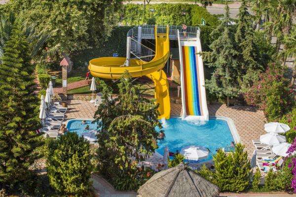 • Medence napernyőkkel és napozóágyakkal, gyermekmedence 2 csúszdával, étterem, bárok, animációs programok, esti showműsorok, miniklub (4-12 éves korig), játszótér, mini diszkó, asztalitenisz, darts, fitneszterem, aerobic, step, wifi kapcsolat a lobbyban. A szálloda közvetlenül a homokos–aprókavicsos- sziklás tengerparton fekszik, ahol napozóágyak, matracok és napernyők ingyenesen vehetők igénybe, a strandtörölközők letét ellenében.