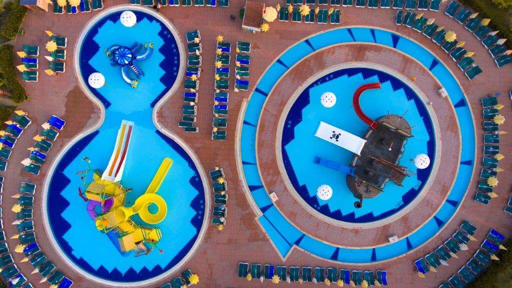 Felnőtt és gyermek medencék napozóágyakkal és napernyőkkel, medence csúszdákkal, 2 étterem, 6 bár, nappali és esti animációs programok az Eftalia Island részen, showműsorok, élő zene bizonyos napokon, diszkó, miniklub (4-12 éveseknek), játszótér, fitneszterem, aerobic, vízi torna, vízi labda, strandröplabda, darts, asztalitenisz, foci, kosárlabda, különböző versenyek, szauna, WiFi elérhetőség.