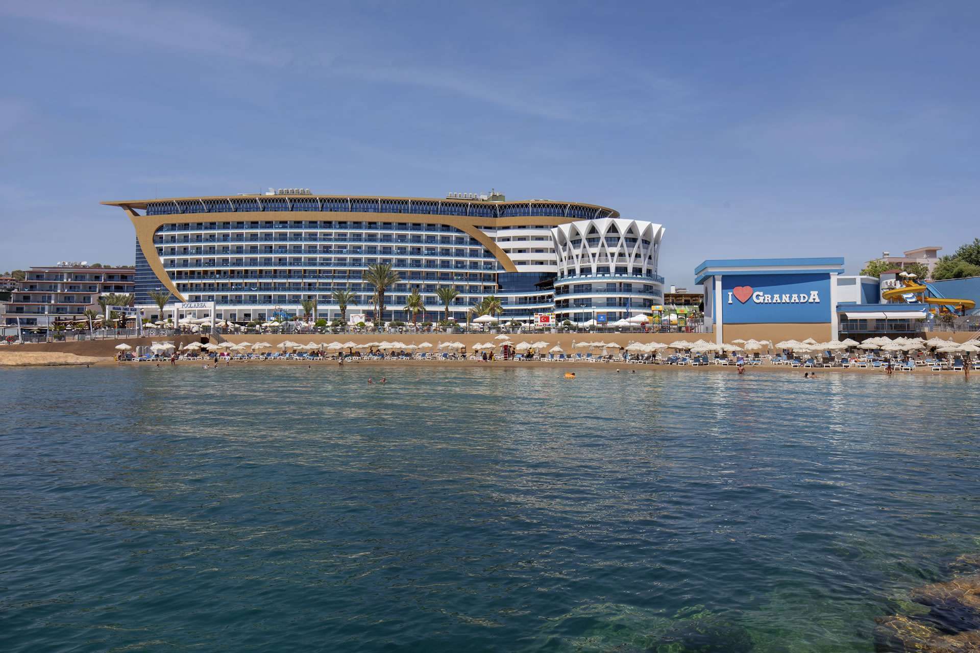 Medence napernyőkkel és napozóágyakkal, belső medence, külső és belső gyermekmedence, aquapark medence 3 csúszdával, főétterem terasszal, 5 a’la carte étterem, 9 bár, nappali animációs programok, esti show-műsorok, alkalmanként élő zene és zongorakoncert, miniklub (4-12 éves korig), minidiszkó, játszótér, törökfürdő, szauna, gőzfürdő, fitneszterem, asztalitenisz, strandröplabda, WIFI a szobákban és a szálloda közösségi helységeiben. A hotel saját strandján a napernyők és napozóágyak, valamint a strandtörölközők használata ingyenes.