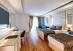 SZOBÁK: összesen 592 szoba • erkély • légkondicionálás • hajszárító • telefon • TV • minibár • kávé- és teafőző készlet • széf • papucs • wifi • standard szobák: kb. 26–32 m², max. 3 fő részére, kilátással a kertre, a medencére vagy oldalról a tengerre • superior szobák: kb. 34–38 m², max. 3+1 fő részére • duplex szobák: kb. 43–78 m², max. 4+1 fő részére, 2 hálószobával • superior családi szobák: kb. 39–47 m², max. 4 fő részére, 2 hálószobával • deluxe családi szobák: kb. 47–64 m², max. 4+1 fő részére, 2 hálószobával és 2 fürdőszobával
