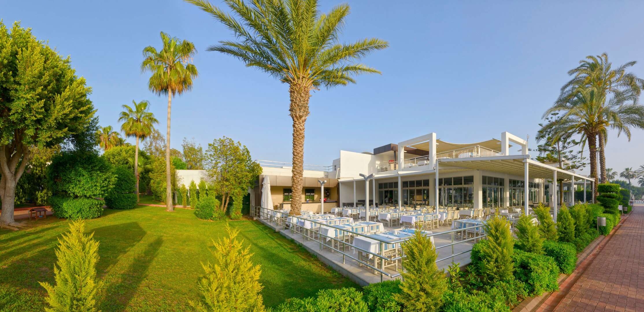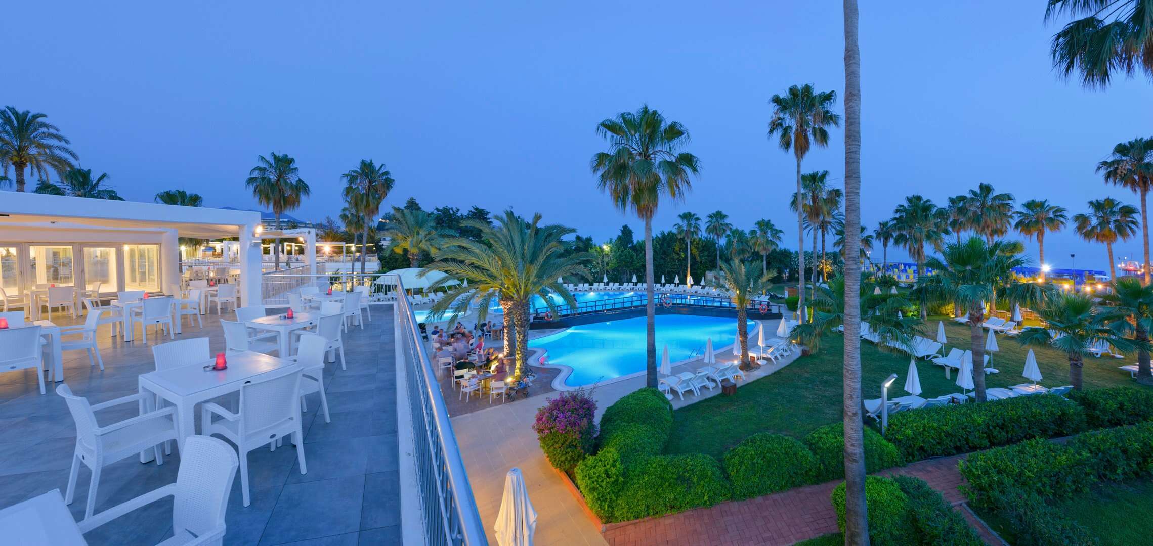 Az All inclusive ellátás tartalmazza a svédasztalos reggelit (7:30–10:00), ebédet (12:30–14:00) és vacsorát (19:00–21:00), valamint a késői reggelit (10:00–10:30). Snackek fogyaszthatók az Aquapark bárban (11:00–16:30) és a strand bárnál (12:00–16:00), továbbá időszakosan gözleme a strand bárnál, valamint fagylalt 10:00–18:00 között. Az italválaszték a helyi és néhány import alkoholos és alkoholmentes italra terjed ki, melyek a szálloda által meghatározott helyeken és időpontokban érhetők el 10:00–24:00 között; éjfél után az italfogyasztás felár ellenében lehetséges. Késői érkezés esetén éjféli büfé szűkített kínálattal áll rendelkezésre. Facsart narancslé és jegeskávé felár ellenében fogyasztható. A hotel gluténmentes étkezést is biztosít.