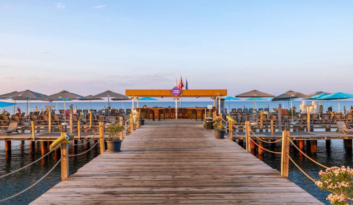 A szálloda privát homokos stranddal rendelkezik közvetlenül a szálloda mellett. Az aprókavicsos part körülbelül 175 m hosszú. A strand móló bárral, valamint strandbárral rendelkezik az Ultra All Inclusive szolgáltatás részeként. Strand pavilonok (felár ellenében). Napernyők, napágyak és törölközők ingyenesen igénybe vehetők. A strand a Kék Zászló díjjal büszkélkedhet.