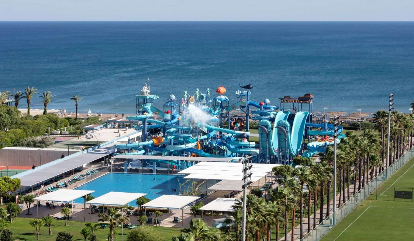 Ez az igényes vendégkörnek szóló luxusszálloda a népszerű Lara üdülőhelyen található. A szálloda közvetlenül a tengerparton helyezkedik el, kb. 16 km-re Antalya központjától és kb. 12 km-re Antalya repülőterétől. Antalya repülőterétől. A komplexum része többek között a focipályák, világított teniszpályák, padelpályák, sportcsarnok, teljesen felszerelt kétszintes fitneszcentrum, nagy vízipark, kávézók, több étterem, konferenciaközpont és a Cosmos City bevásárlóközpont.