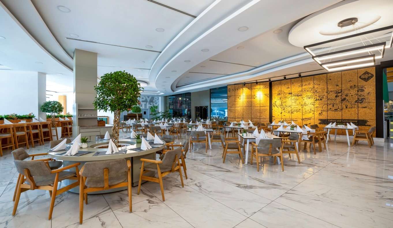 Ultra all inclusive: reggeli (7:00–10:30), ebéd (12:30–14:30), vacsora (19:00–21:30), széles választékú snackek a nap folyamán, helyi és egészséges ételek. Helyi alkoholmentes és alkoholos italok, válogatott importált alkoholos italok, melyeket a szálloda által meghatározott időpontokban és helyszíneken szolgálnak fel.