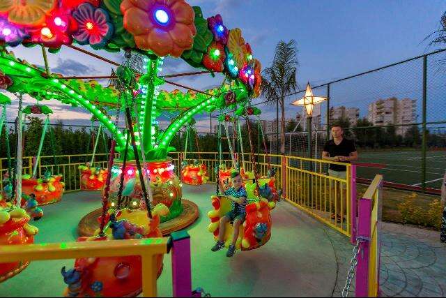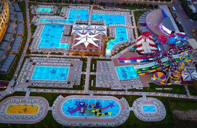 • Medence 2.300 nm-en napernyőkkel és napozóágyakkal, félolimpiai medence, relax medence (csak felnőtteknek), aquapark 8 felnőtt és 3 gyermekcsúszdával, 2 gyermekmedence, 12 étterem, 8 bár, nappali és esti animációs programok, esti show-műsorok, tánc- és musicalestek, alkalmanként élő zene, diszkó tematikus partikkal, vidámpark, miniklub (4-12 éves korig), játszótér, minikosárlabda, minidiszkó, step aerobik, reggeli torna, táncleckék, asztalitenisz, boccia, strandröplabda, vízi torna, darts, vízilabda, fitneszterem, multifunkcionális sportpálya, tenisz (napközben) felszereléssel, minifutball, szauna, gőzfürdő, törökfürdő, WIFI a szobákban és a lobbyban.