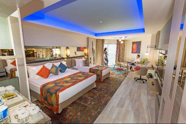 • Ultra all inclusive: reggeli, kései reggeli, ebéd és vacsora büférendszerben, diétás büfé, gyermekbüfé a főétkezéseknél, vacsoránál gyermekétterem rész, tematikus estek, gözleme, pide, pizza, gofri és fagylalt bizonyos időpontokban, snackek napközben, éjszakai snack ételek (00:00-07:00 között), délutáni kávé/tea/sütemények, helyi specialitások, bizonyos helyi és néhány import alkoholos és alkoholmentes italok (napi 24 órában), minibár (üdítők, víz és sör; naponta feltöltve).