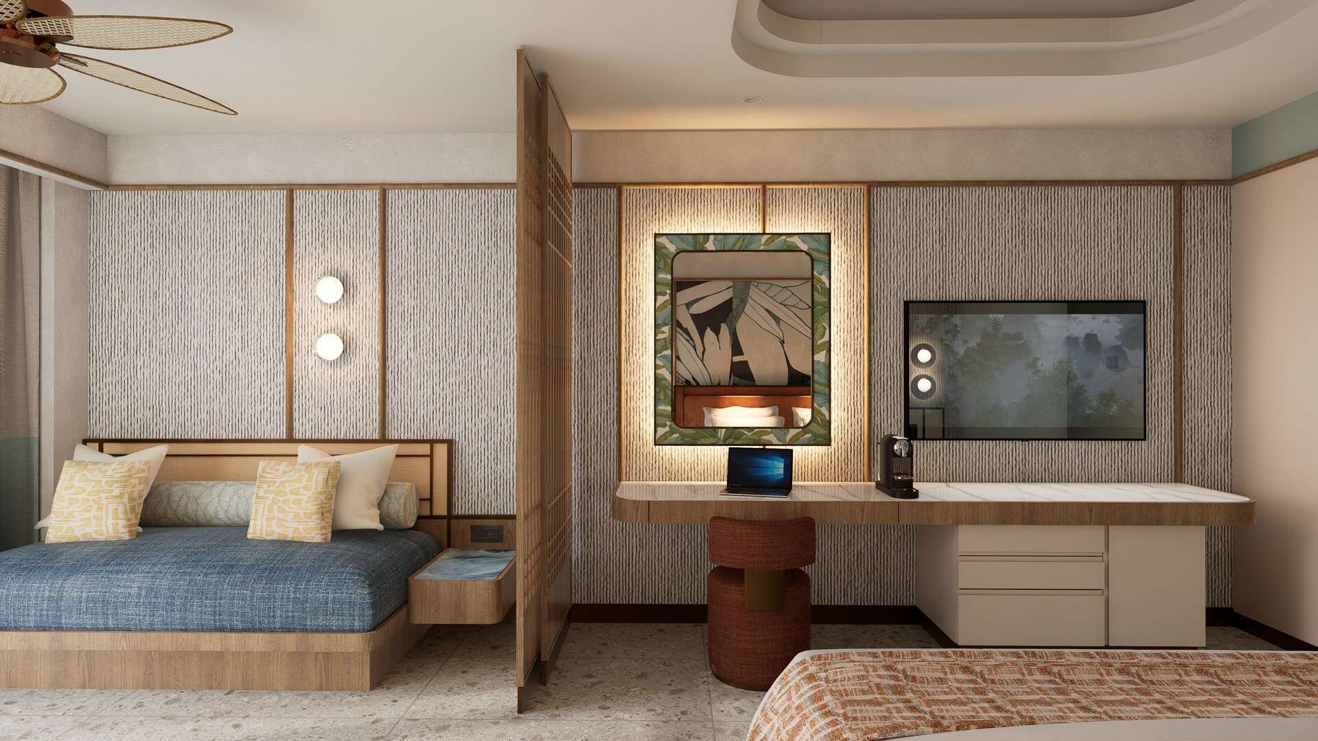 Kényelmes, modern Deluxe kétágyas szobák kb 35 m², erkéllyel, akár 2 pótággyal gyermekek (11,99 év alattiak) vagy felnőttek számára, kerti kilátással, a szobák saját fürdőszobával. ,hajszárító, WC, papucs, fürdőköpeny), légkondicionálóval, ingyenes WiFi-vel, műholdas TV-vel, telefonnal, ingyenes széffel, minibárral (minden nap ingyenes alkoholmentes italokkal és sörrel feltöltve), kávé- vagy tea készítővel erkéllyel vagy terasszal.