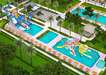 Fő kültéri medence (a téli szezonban fűtött), 2 kültéri medence (a téli szezonban fűtött), fedett medence külön gyermekrészleggel, csúszdás medence, pancsolómedence