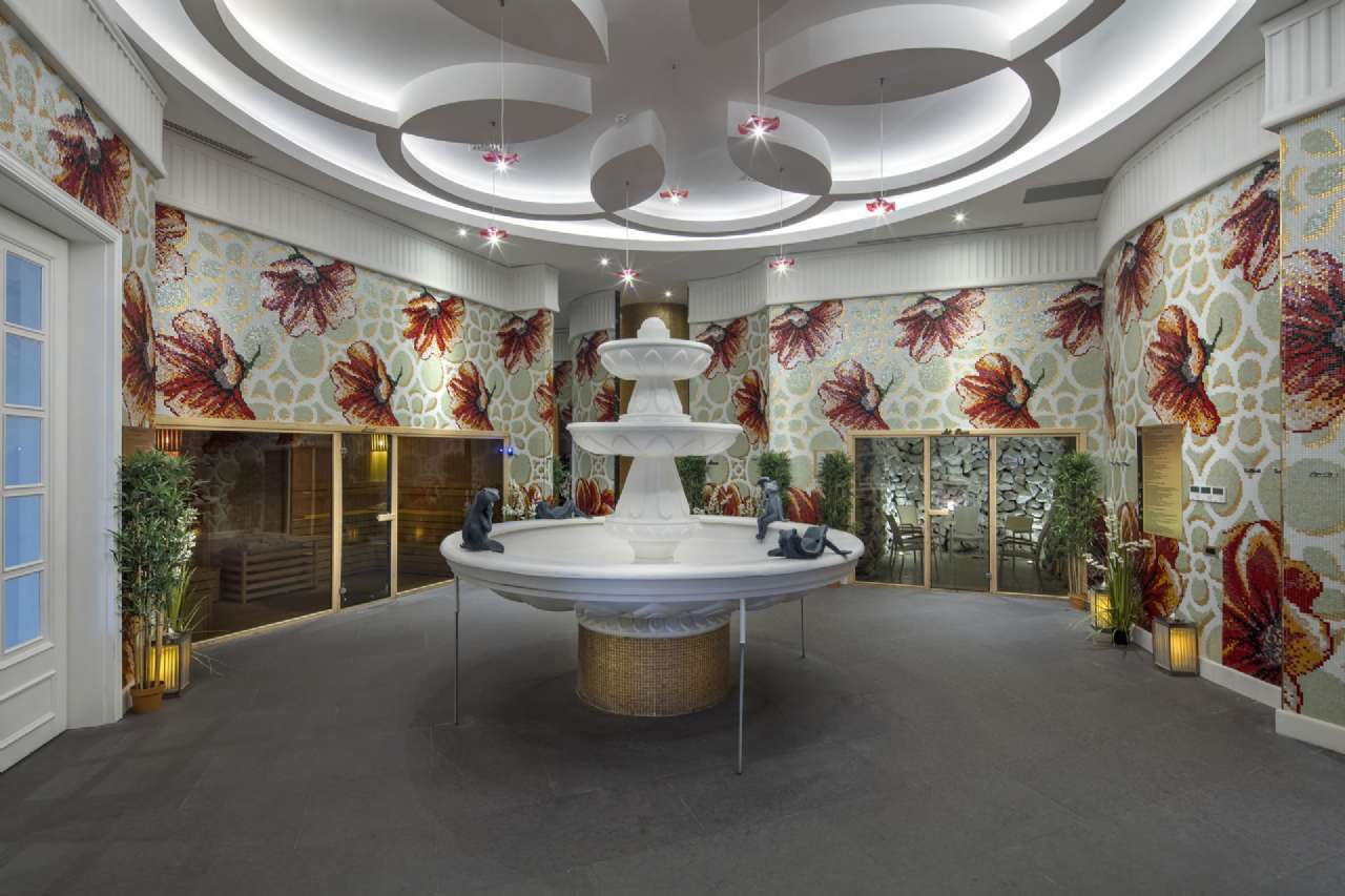 10.000. nm-es medence napernyőkkel és napozóágyakkal, 3.147 nm-es medence csak felnőtteknek, „Maldív” medence bérelhető „Maldív” bungalókkal 3.000 nm-en, félolimpiai medence, hullámmedence, külön medence a családi „tóparti házakhoz”, illetve a villákhoz, „lusta” folyó”, aquapark 9 felnőtt és 6 gyermekcsúszdával, 2 belső medence (egyikük tengervizes), belső gyermekmedence, főétterem, 3 snack étterem, 4 a’la carte étterem, 17 bár, nappali és esti animációs programok, profi show-műsorok az amfiteátrumban, alkalmanként tematikus partik és élő zene, karaoke, zongoraelőadás, törökfürdő, szauna, gőzfürdő, só szoba, fitneszterem, teniszpálya felszereléssel, minifutball, asztalitenisz, darts, kosárlabda, strandröplabda, WIFI a szobákban, a szálloda közösségi helységeiben és a parton, shuttle járat a partra. A hotel saját strandján a napernyők, napozóágyak és strandtörölközők ingyenesen használhatók.