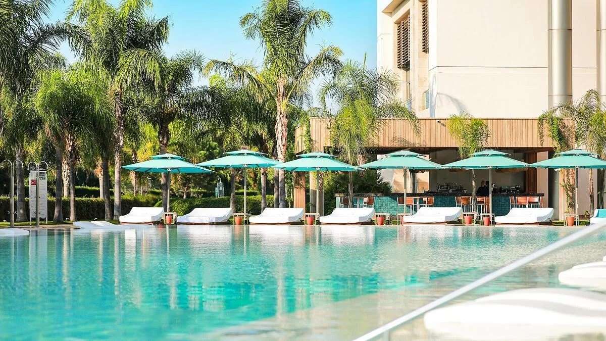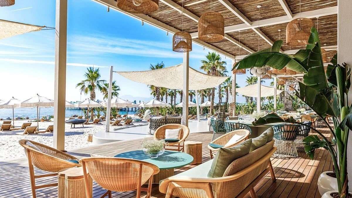 közvetlenül a kék zászlóval kitüntetett homokos strand mellett 16 étterem és 16 bár gazdag sport- és szabadidős kínálat