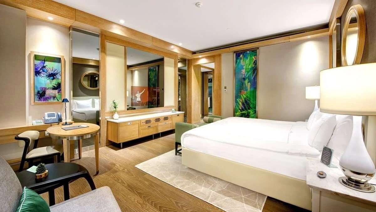 ötcsillagos luxus 2014-ben épült 612 szoba, főépület és melléképületek, legfeljebb 5 emelet, liftek tágas lobby 24 órás recepció concierge szolgáltatás parkoló széf a recepción konferenciaközpont (20 terem) max. 2000 fő befogadására ingyenes vezeték nélküli internet elfogadott hitelkártyák: Visa, MasterCard, Eurocard, American Express