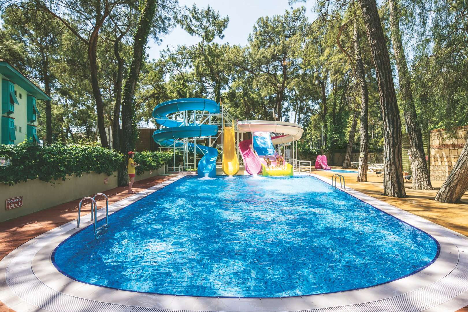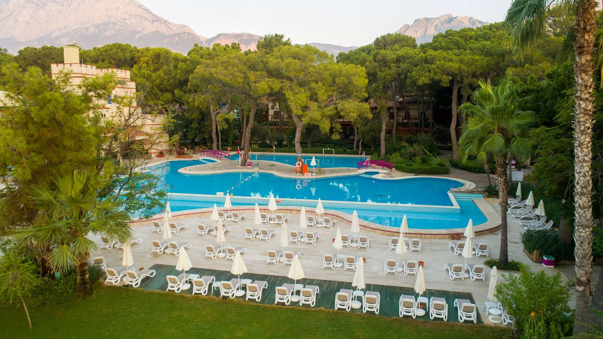 Nagy medence komlpexum;Csúszdák;Festői fekvés a Taurus-hegység lábánál;Ultra all inclusive ellátás;Családi nyaralás