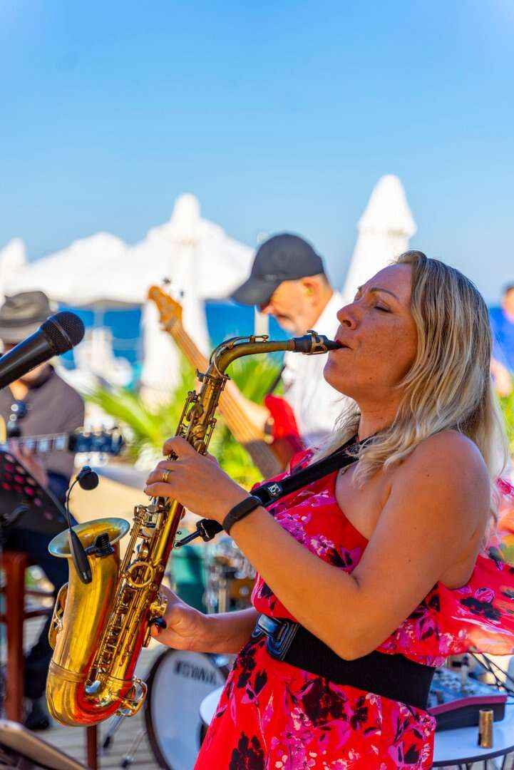 A hotel közvetlenül a kavicsos tengerparton fekszik, saját strandján a napernyők, napágyak, matracok és törölközők ingyenesen állnak a vendégek rendelkezésére. A strandon az all inclusive bár kínálata a hotel vendégeinek rendelkezésére áll.