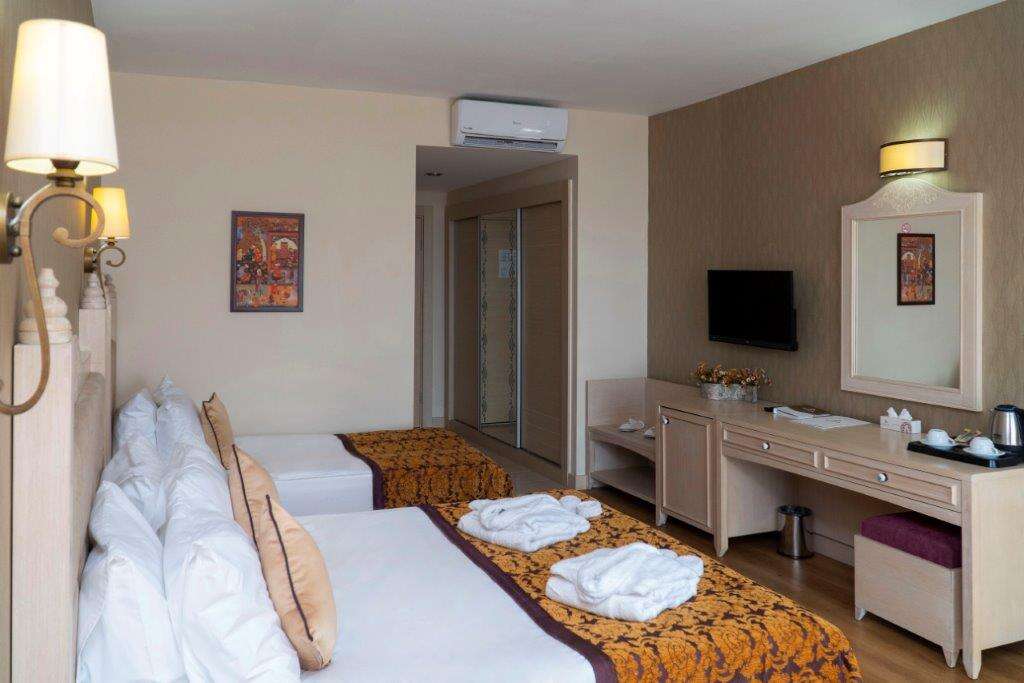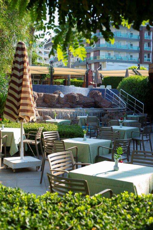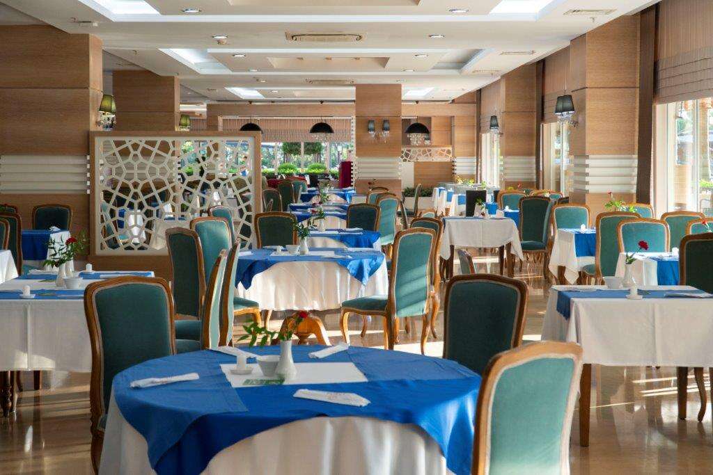 Ultra All Inclusive: Reggeli, ebéd és vacsora büférendszerben, késői reggeli, napközbeni snackek, éjjeli mini büfé (21.30-07:00), kávé/tea/ sütemények, fagylalt, gofri, gözleme, döner, sültkrumpli és döner bizonyos időpontokban, fogyasztás az a’la carte éttermekben (hal, olasz és török, a tartózkodás során egy alkalommal, előzetes asztalfoglalással), helyi alkoholos és alkoholmentes italok a nap 24 órájában, minibár naponta vízzel és üdítőkkel feltöltve.
