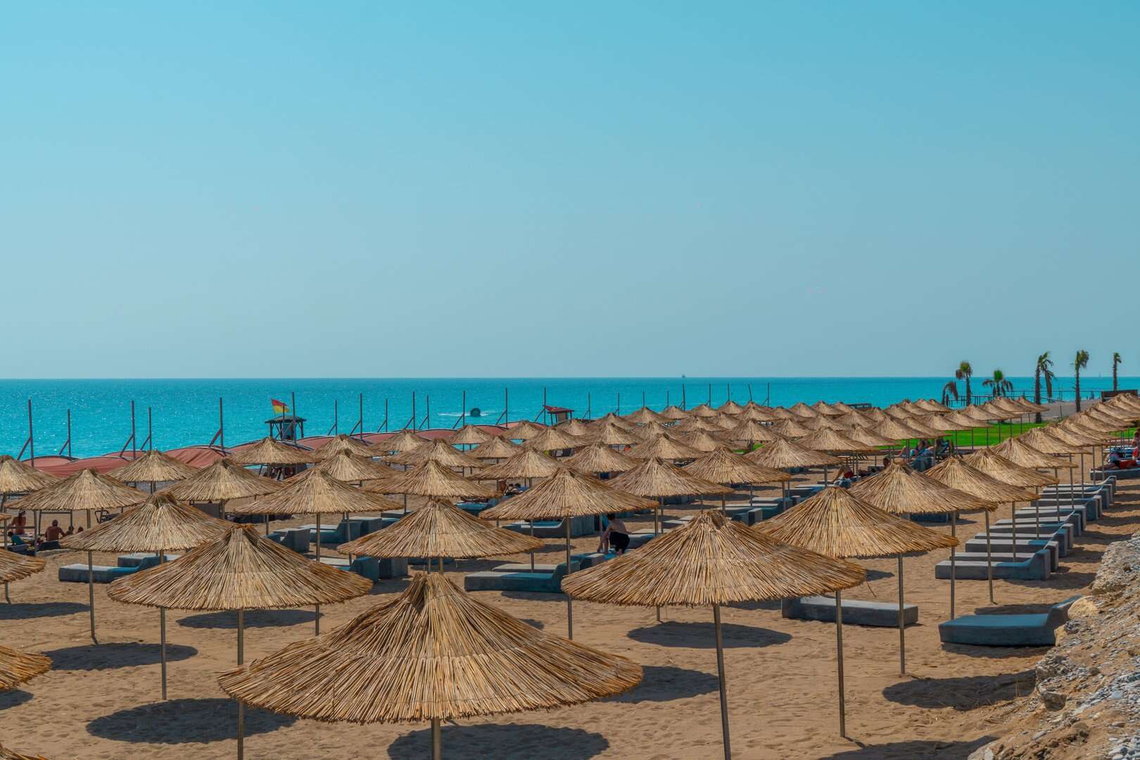 A szállodának saját partszakasza van, közvetlenül a parton és saját, csúszdás aquapark is tartozik hozzá. A partszakasz kb. 200 m hosszú, jellemzően apró kavicsos talajjal. Megközelítésére a szálloda alagútján keresztül van lehetőség. A parton található törölközők, napágyak és napernyők a vendégek számára ingyenesen használhatóak.