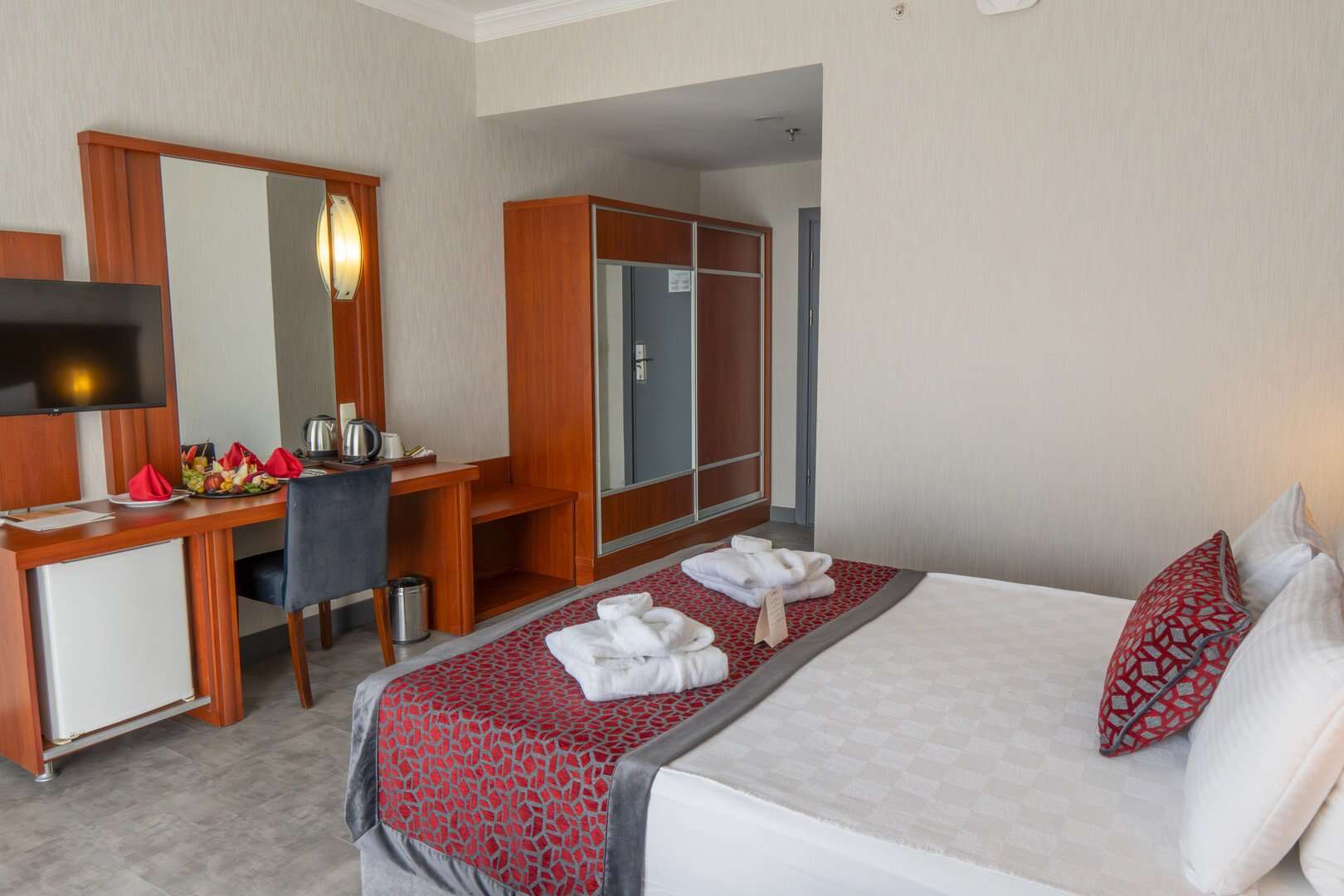 Standard kétszemélyes kertre vagy tengerre néző szoba érhető el (max egy fő számára pótágyazható). Mérete kb. 25 m2. A szobák 2023-ban lettek felújítva, modern, elegáns stílusuk van. A szobában van fotel, Wifi, kávéfőző, minibár, pipere kellékek, hajszárító és széf.