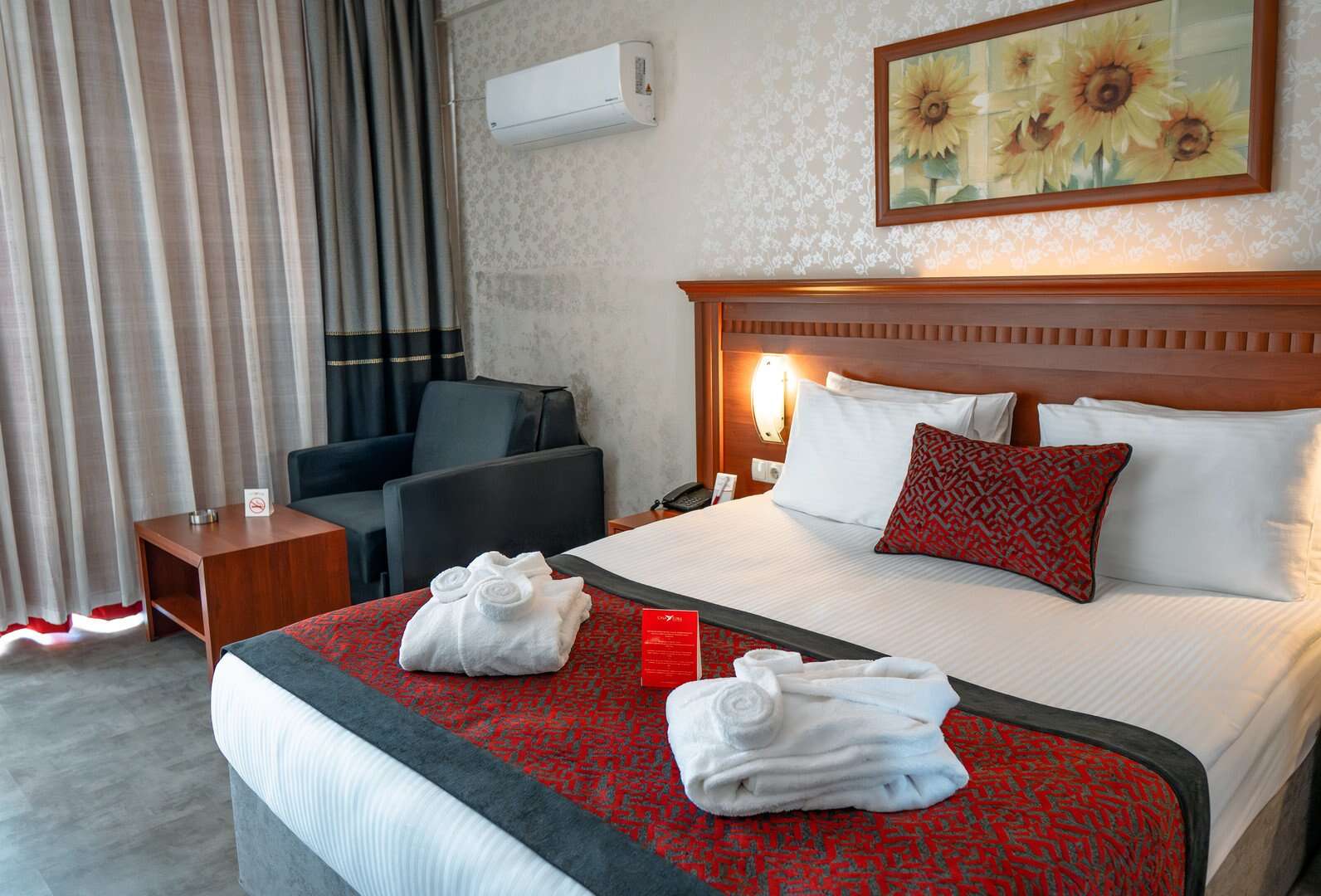 Standard kétszemélyes kertre vagy tengerre néző szoba érhető el (max egy fő számára pótágyazható). Mérete kb. 25 m2. A szobák 2023-ban lettek felújítva, modern, elegáns stílusuk van. A szobában van fotel, Wifi, kávéfőző, minibár, pipere kellékek, hajszárító és széf.