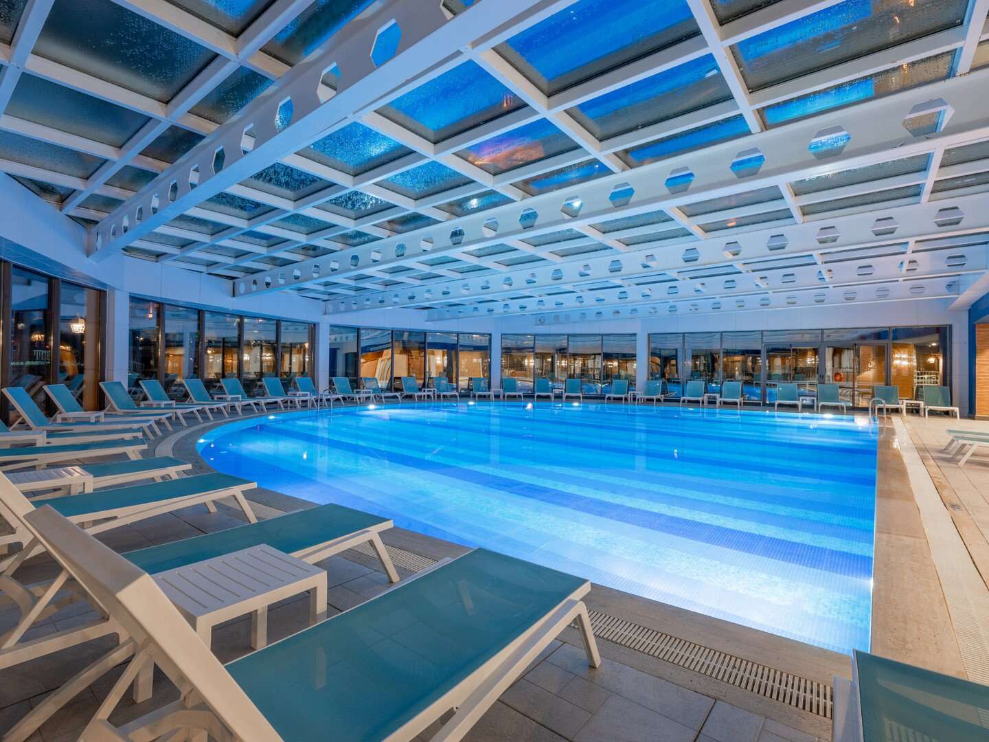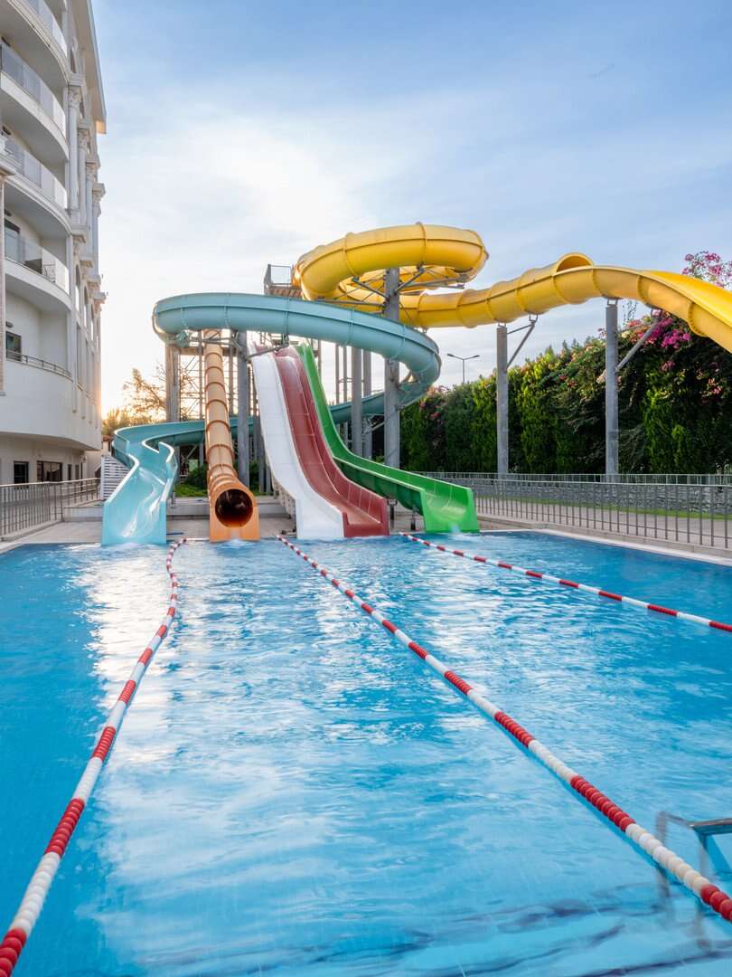 Úszómedence (édesvízi, kb. 1600 m², mélysége 1,4 m); gyermekmedence, (édesvízi, kb. 160 m², mélysége 0,5 m); úszómedence 6 csúszdával ( édesvízi, kb. 180 m², mélység 1,2 m); gyermekmedence (édesvízi, kb. 20 m², mélység 0,5 m). Ingyenes napernyők és napozóágyak a medencék mellett, törölközők letét ellenében rendelkezésre állnak. Asztalitenisz, fitnesz, boccia; mini klub (4-12 évesek számára), nappali és esti szórakoztató programok felnőtteknek és gyermekeknek, diszkó.