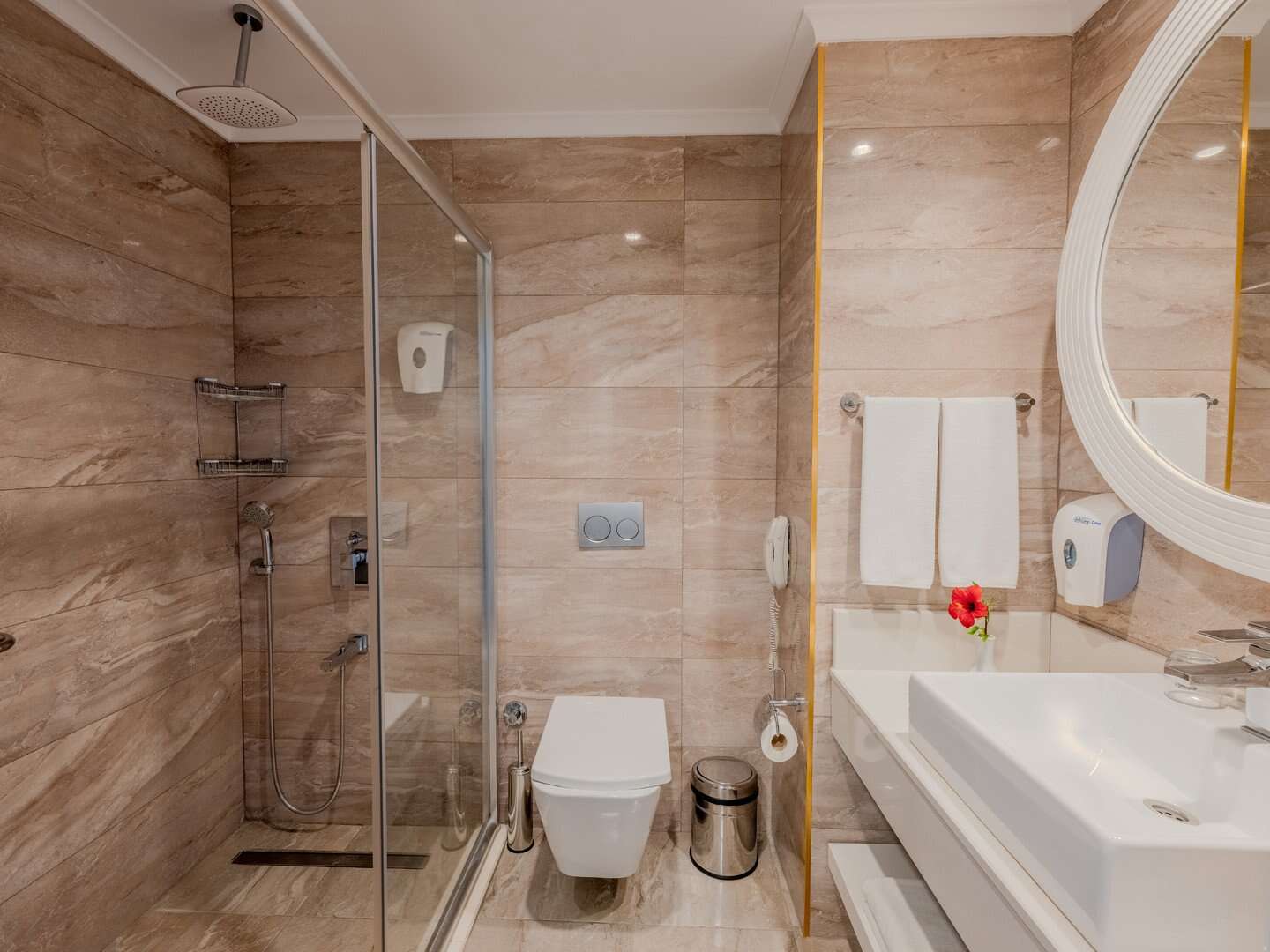 Ötcsillagos, 2015-ben épült. 306 szoba, 1 épület, 7 emelet, 2 lift, tágas és elegáns lobby, 24 órás recepció, főétterem – büféétkezés, török és nemzetközi konyha, gyermekszékek rendelkezésre állnak, 2 à la carte étterem: olasz és török konyha, előzetes foglalás szükséges, (öltözködési szabályok – hosszú nadrág a férfiak számára); 7 bár, beleértve a strand- és medencebárokat, cukrászdát és bisztrót; terasz; 3 konferenciaterem, ingyenes vezeték nélküli internet a recepción; felár ellenében: internetpont, szobaszerviz, mosoda, fodrász; mozgáskorlátozott vendégek számára kialakított szobák; elfogadott hitelkártyák: Visa, MasterCard.