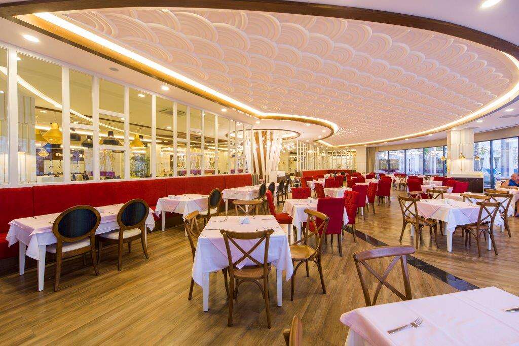 Ultra All inclusive: reggeli,kései reggeli, ebéd és vacsora büférendszerben, klései reggeli, éjszakai snack (22:00-07:00 között), éjféli leves, délutáni kávé/tea/sütemények, fagylalt (bizonyos időpontban), számos helyi és néhány import alkoholos és alkoholmentes ital (napi 24 órában), koktélok, naponta üdítők és víz a minibárból, 2 a’la carte étterem (török és mediterrán; előzetes foglalással).