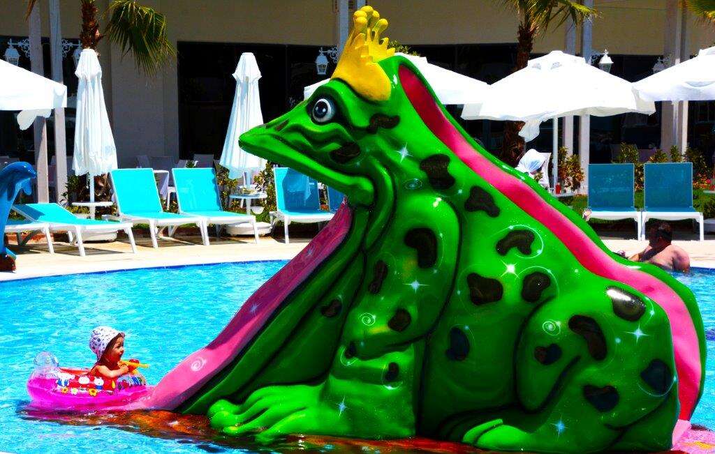 Medence napernyőkkel és napozóágyakkal, gyermekmedence, medence 6 csúszdával, főétterem, 2 a’la carte étterem, 2 snack étterem, cukrászda, 8 bár, nappali és esti animációs programok, alkalmanként élő zene, diszkó, miniklub (4-12 éves korig), minidiszkó, játszótér, fitneszterem, törökfürdő, szauna, gőzfürdő, asztalitenisz, darts, boccia, aerobik, vízi aerobik, zumba, medencejátékok, strandröplabda, WIFI a szobákban és a szálloda közösségi helységeiben. A hotel saját strandján a napernyők és a napozóágyak ingyenesen, a strandtörölközők letét ellenében vehetők igénybe.