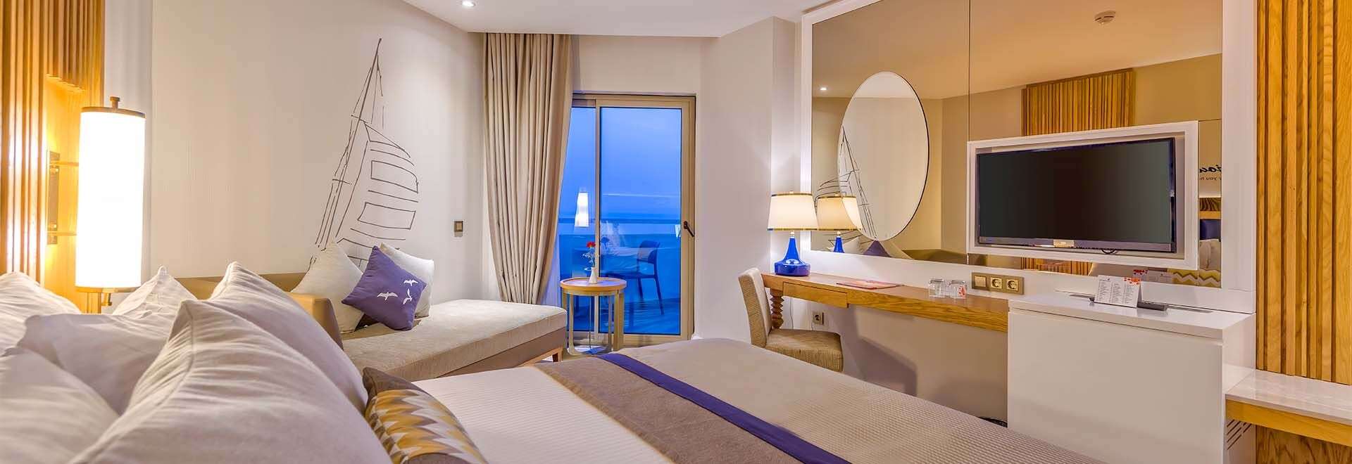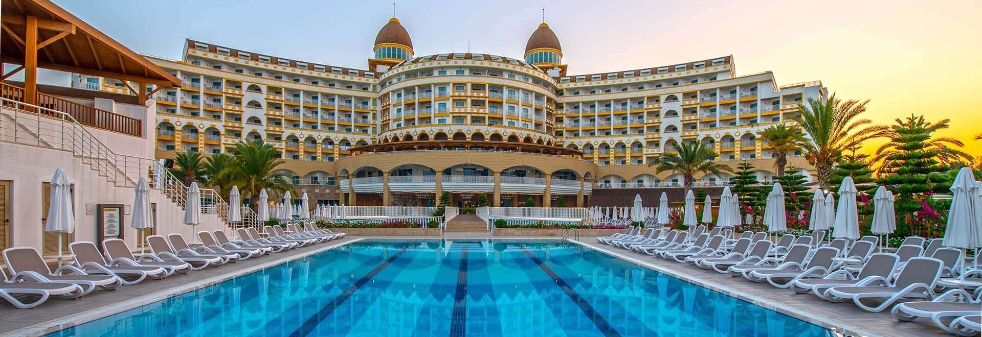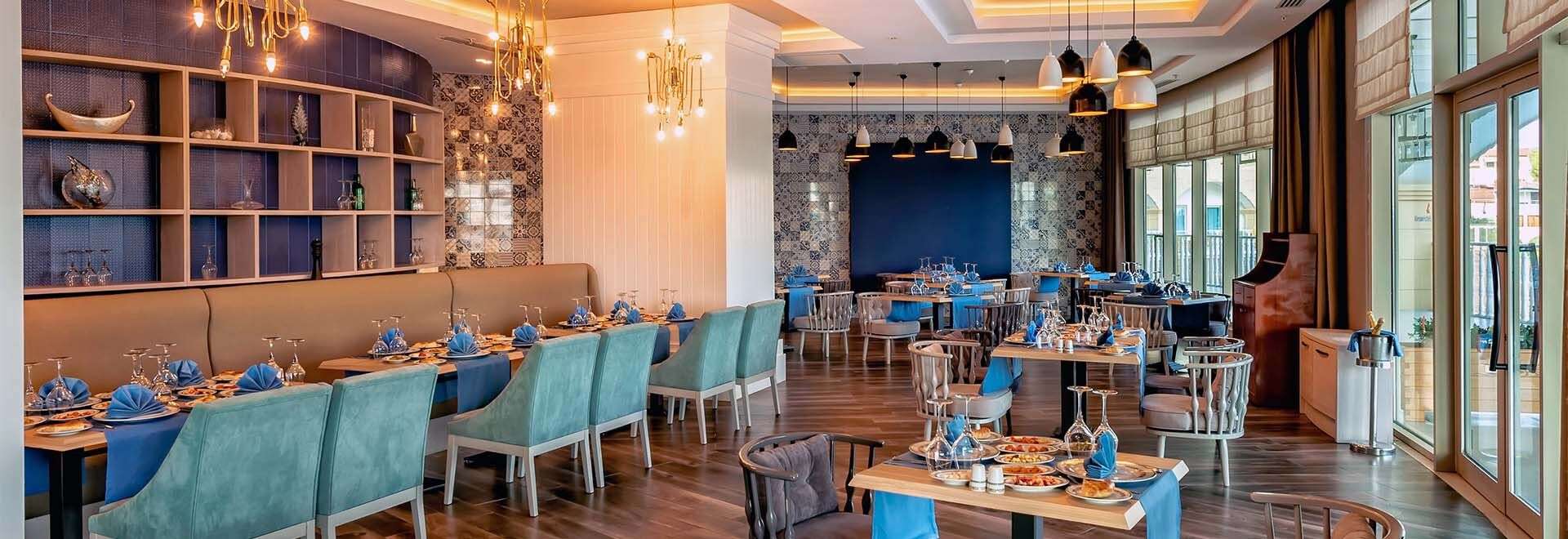 • Ultra All Inclusive: Reggeli, ebéd és vacsora büférendszerben, késői reggeli, diétás ételek, frissen facsart gyümölcslé a reggelinél, napközbeni snackek, gözleme, kávé/tea, sütemények, fagylalt, tematikus estek, helyi és néhány import alkoholos és alkoholmentes italok a nap 24 órájában, naponta vízzel, üdítővel, sörrel, csokoládéval és chipsel feltöltött minibár, 3 a’la carte étterem (mediterrán, török, sushi, a tartózkodás során egy alkalommal, előzetes asztalfoglalással).