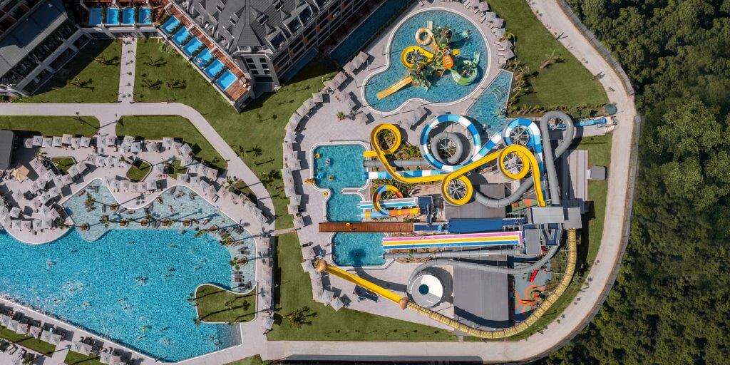 Főmedence 2.000 nm-en napernyőkkel és napozóágyakkal, relax medence, Maldív medence (csak 16 év felettieknek), végtelenített medence, beltéri medence, gyermek élménymedence, aquapark 9 felnőtt és 5 gyermek csúszdával, főétterem, 2 snack étterem, 6 a’la carte étterem, 5 bár, 2 kávézó, cukrászda, animációs programok, esti show-műsorok, élő zene, diszkó, miniklub (4-12 éves korig), tiniklub (13-16 éves korig), játszószoba, playstation, törökfürdő, szauna, gőzfürdő, fitneszterem, asztalitenisz, darts, zumba, jóga, pilates, strandröplabda, WIFI a szobákban és a szálloda közösségi helységeiben.