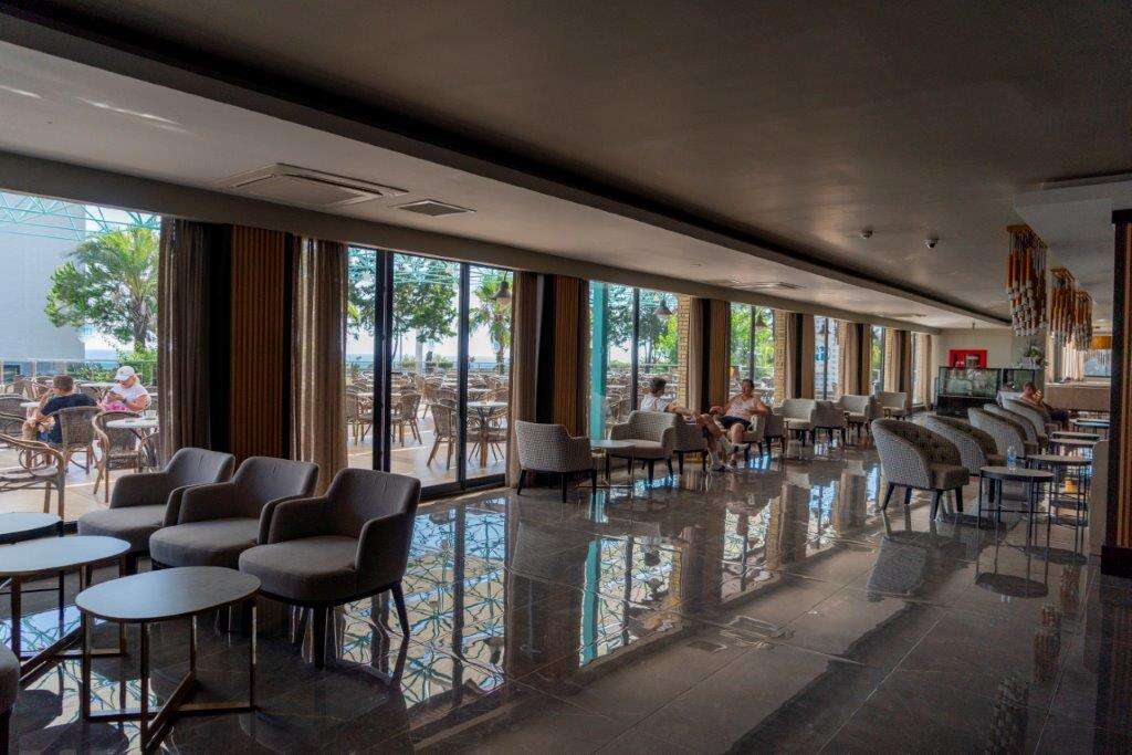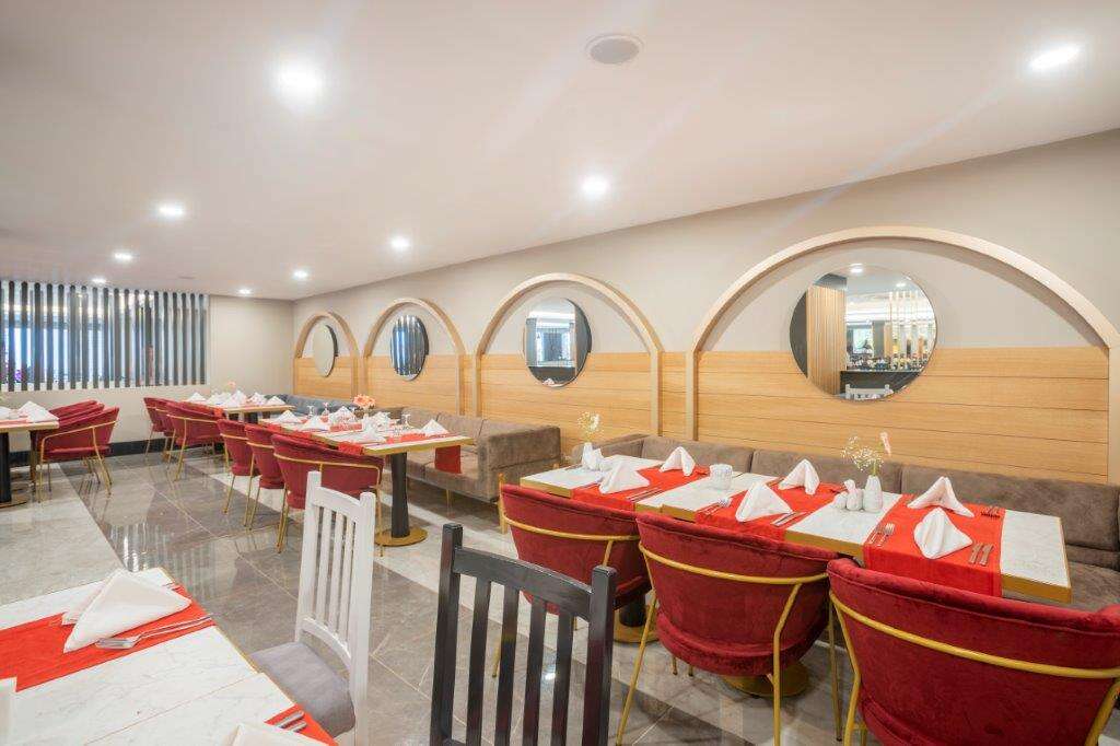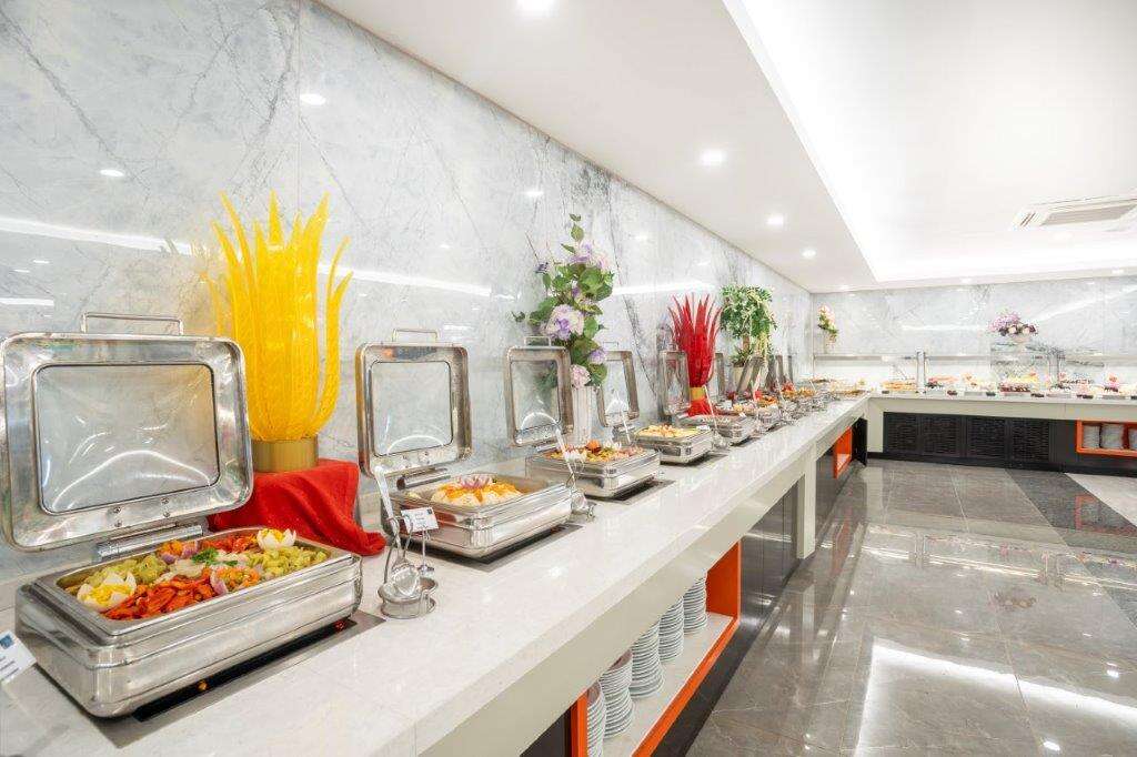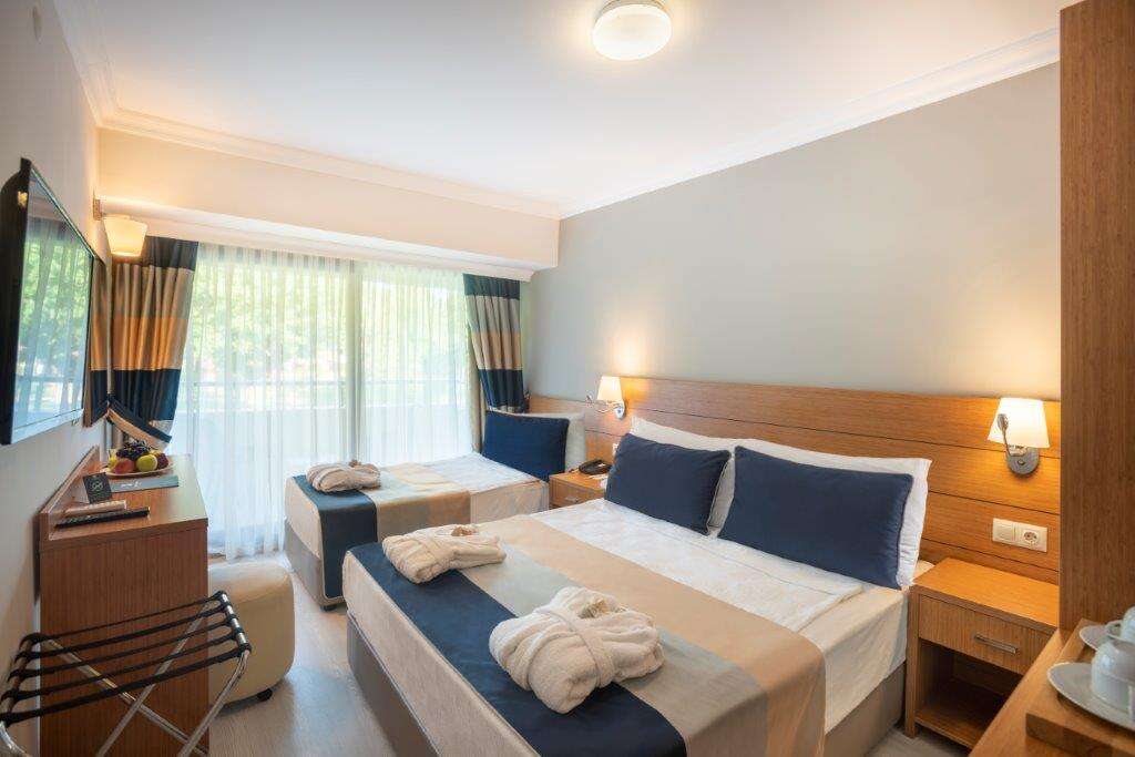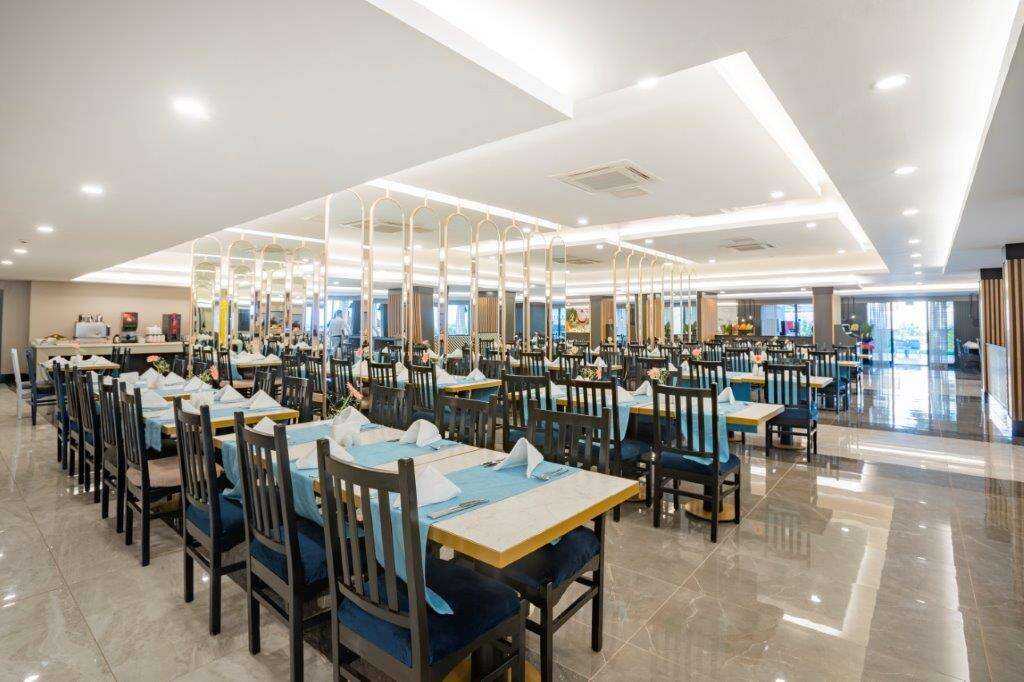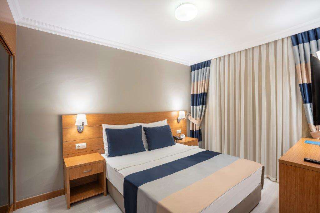 • All Inclusive: Reggeli, ebéd és vacsora büférendszerben, késői reggeli (10:00-10:30), éjféli leves (23:00-01:00), napközbeni snackek, kávé/tea és sütemények, gözleme és fagylalt bizonyos időpontokban, helyi alkoholos és alkoholmentes italok (10:00-24:00), érkezéskor üdítőkkel és vízzel, később csak vízzel naponta feltöltött minibár. 2 a’la carte étterem (mediterrán és török, a tartózkodás során 1 alkalommal, előzetes asztalfoglalással).
