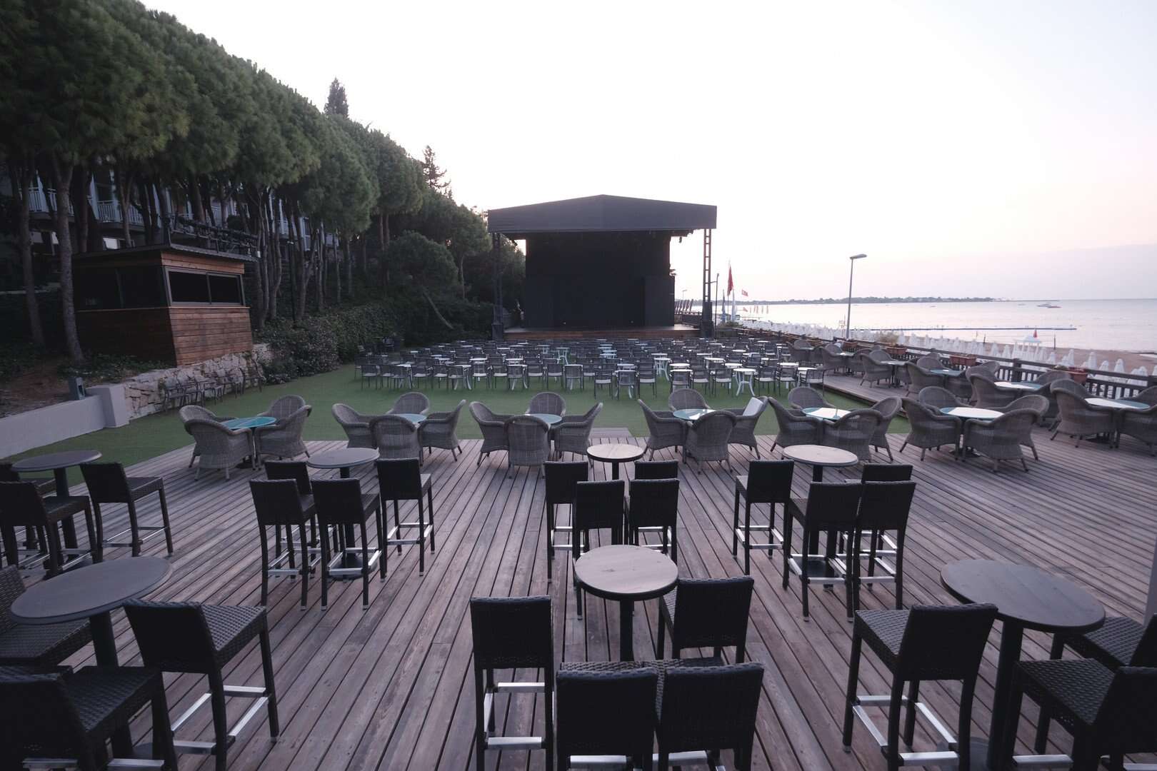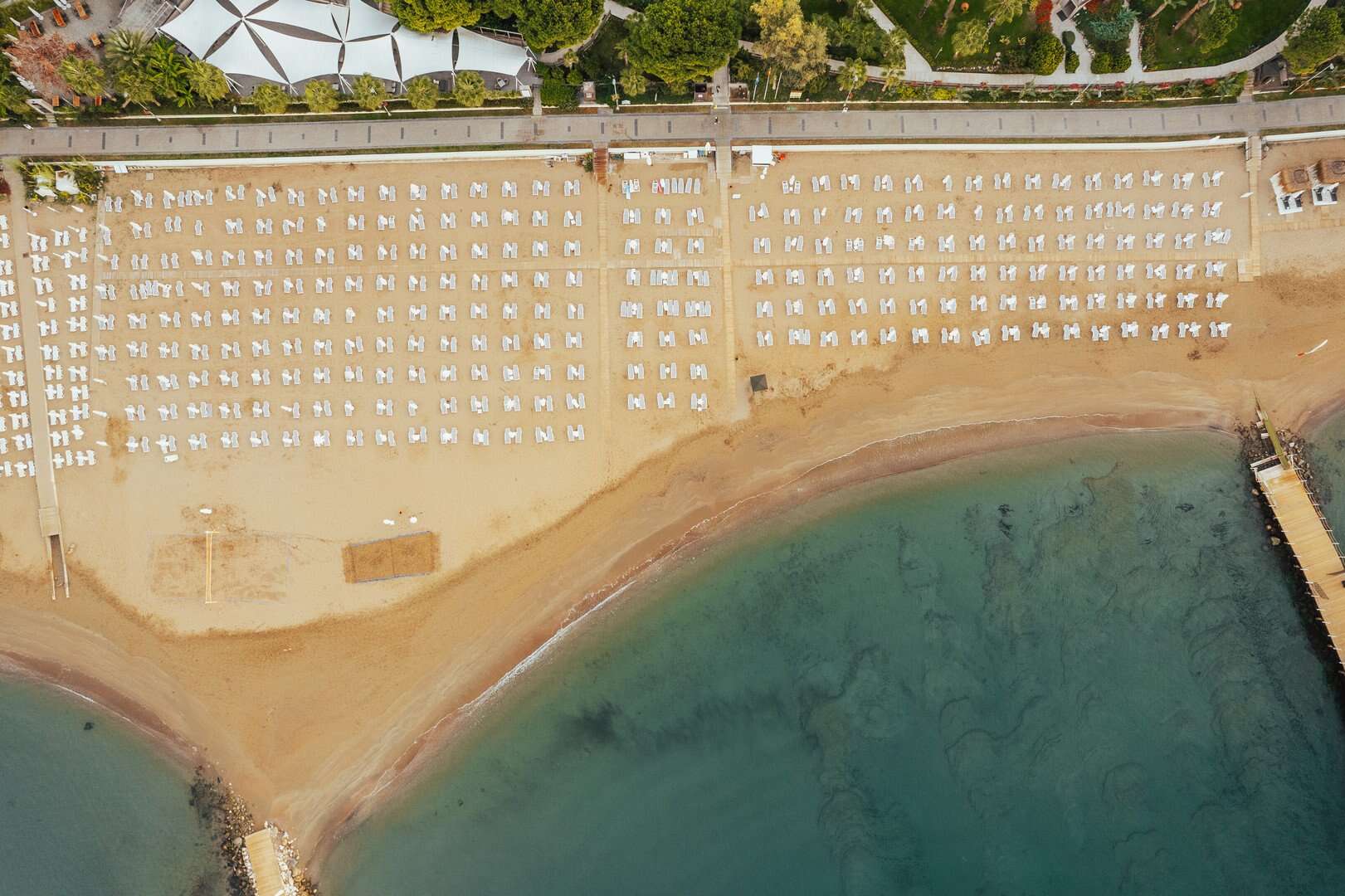 200 méter hosszú aranyhomokos saját strand, stéggel, napernyőkkel, napágyakkal, matracokkal és törölközőkkel, all inclusive bár a strandon. Családi használatra kiváló partszakasz. Felár ellenében: privát kabinák (cabanák) extra szolgáltatásokkal (pezsgő, snack, ital, gyümölcs stb.), kizárólag 10:00–18:00 között.